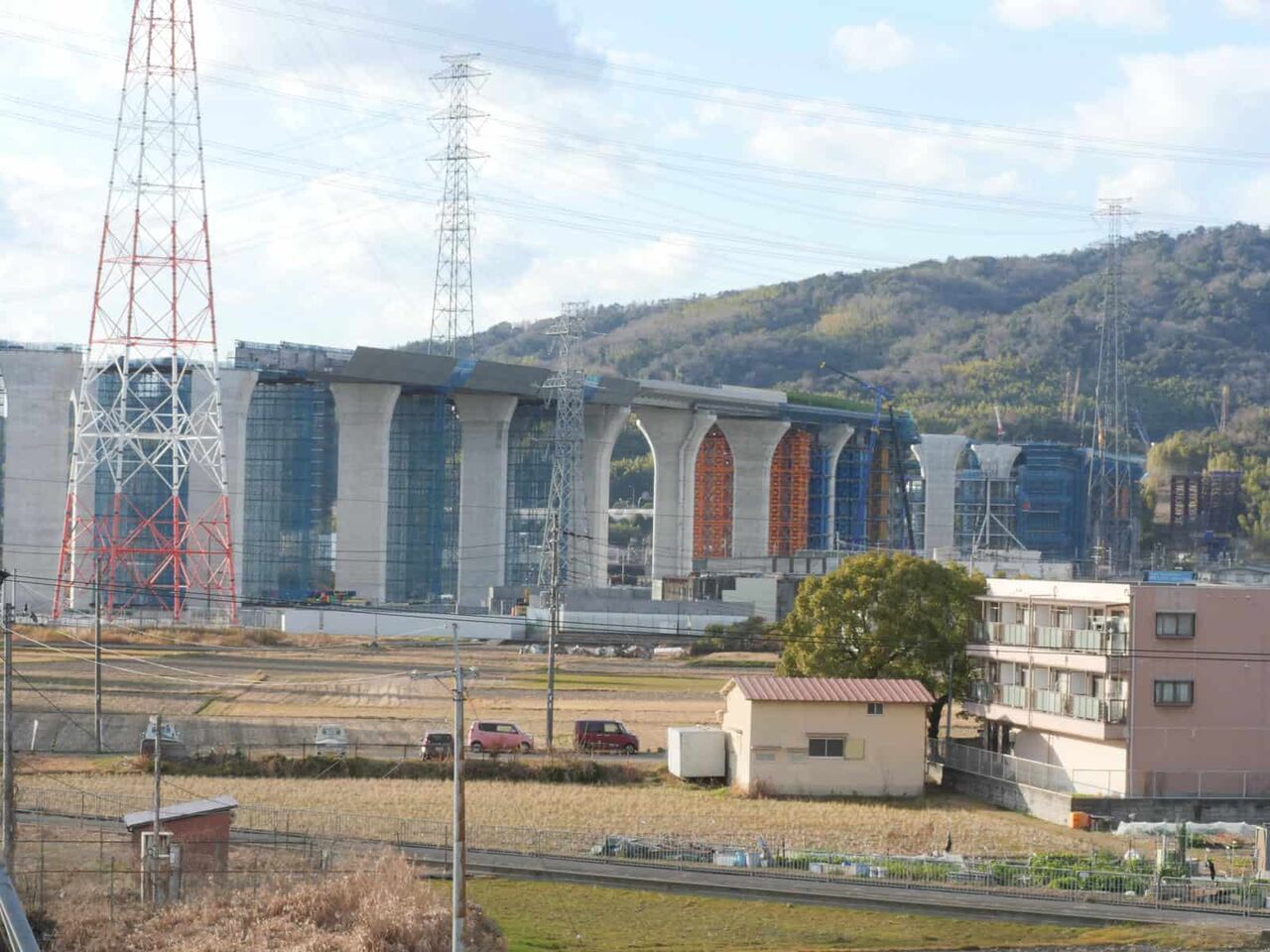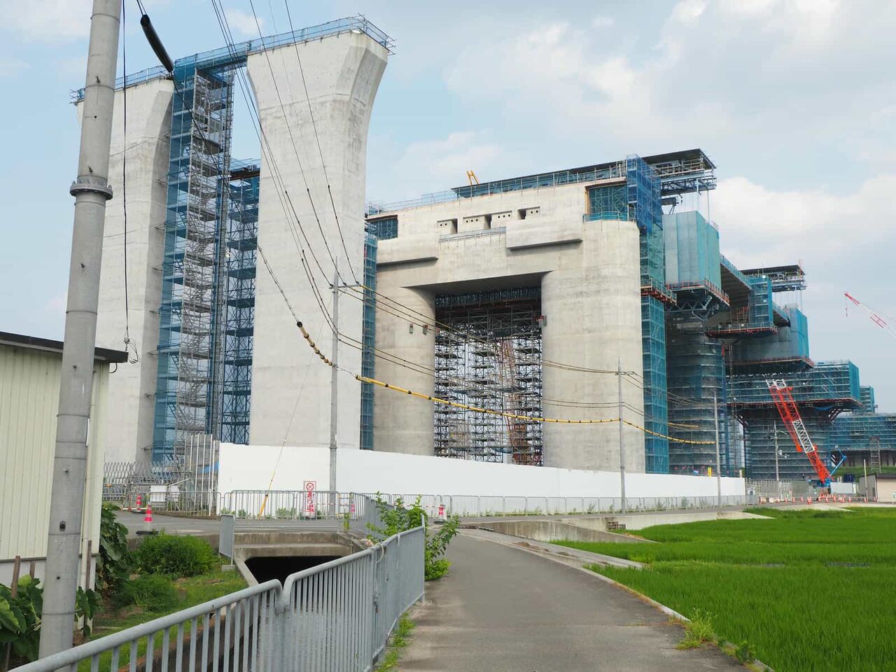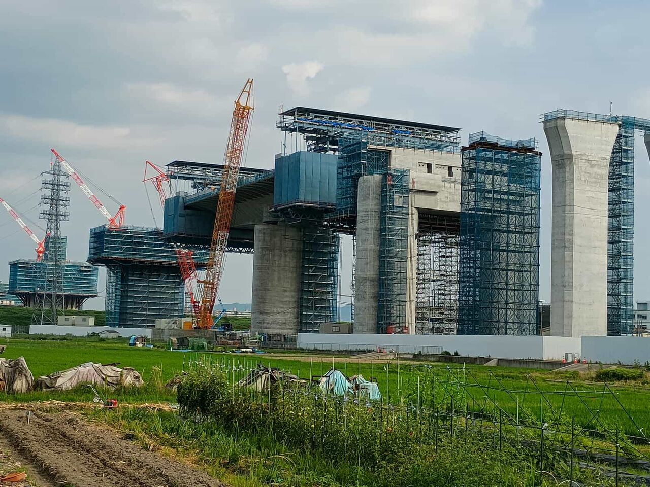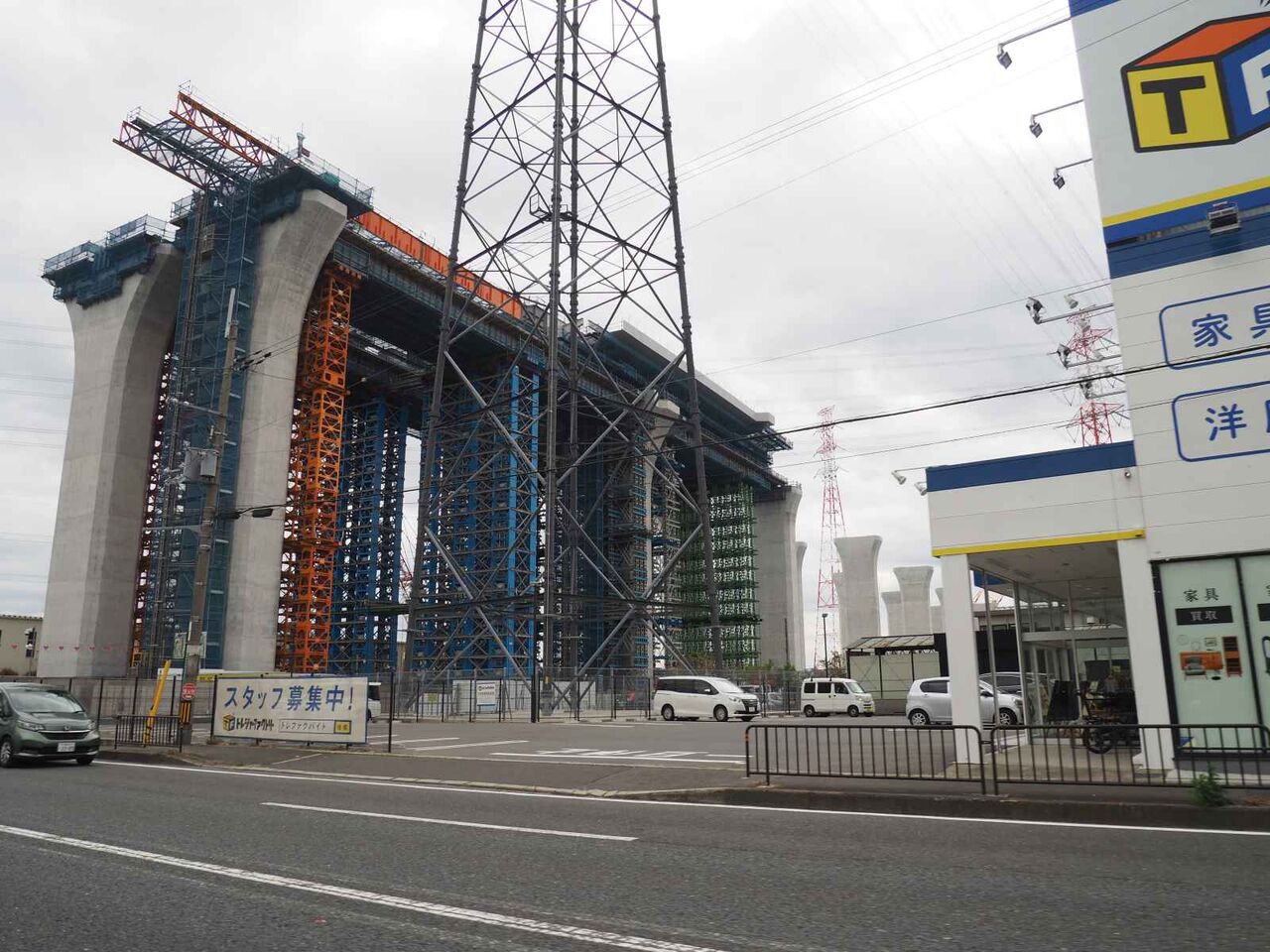 最後にこれは国道171号線を越えて、新幹線のところまできたところ。すでにここまでの間の橋脚はすべてかなり進行しています。