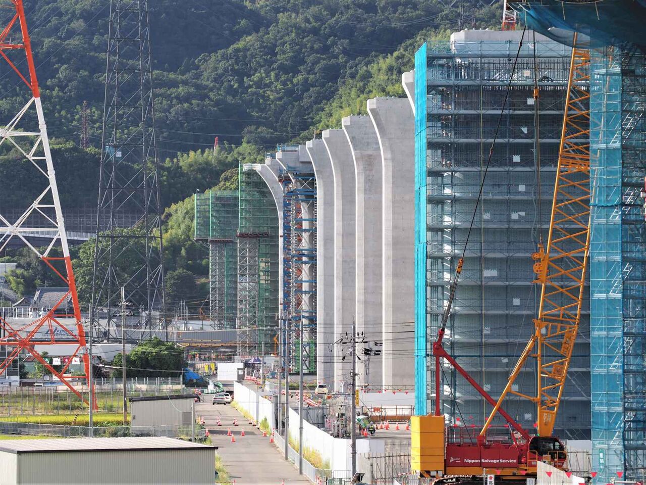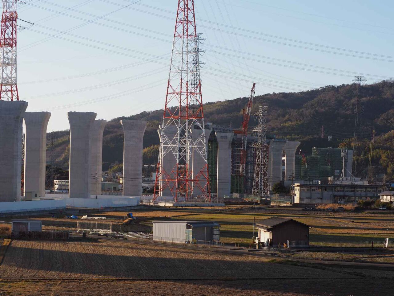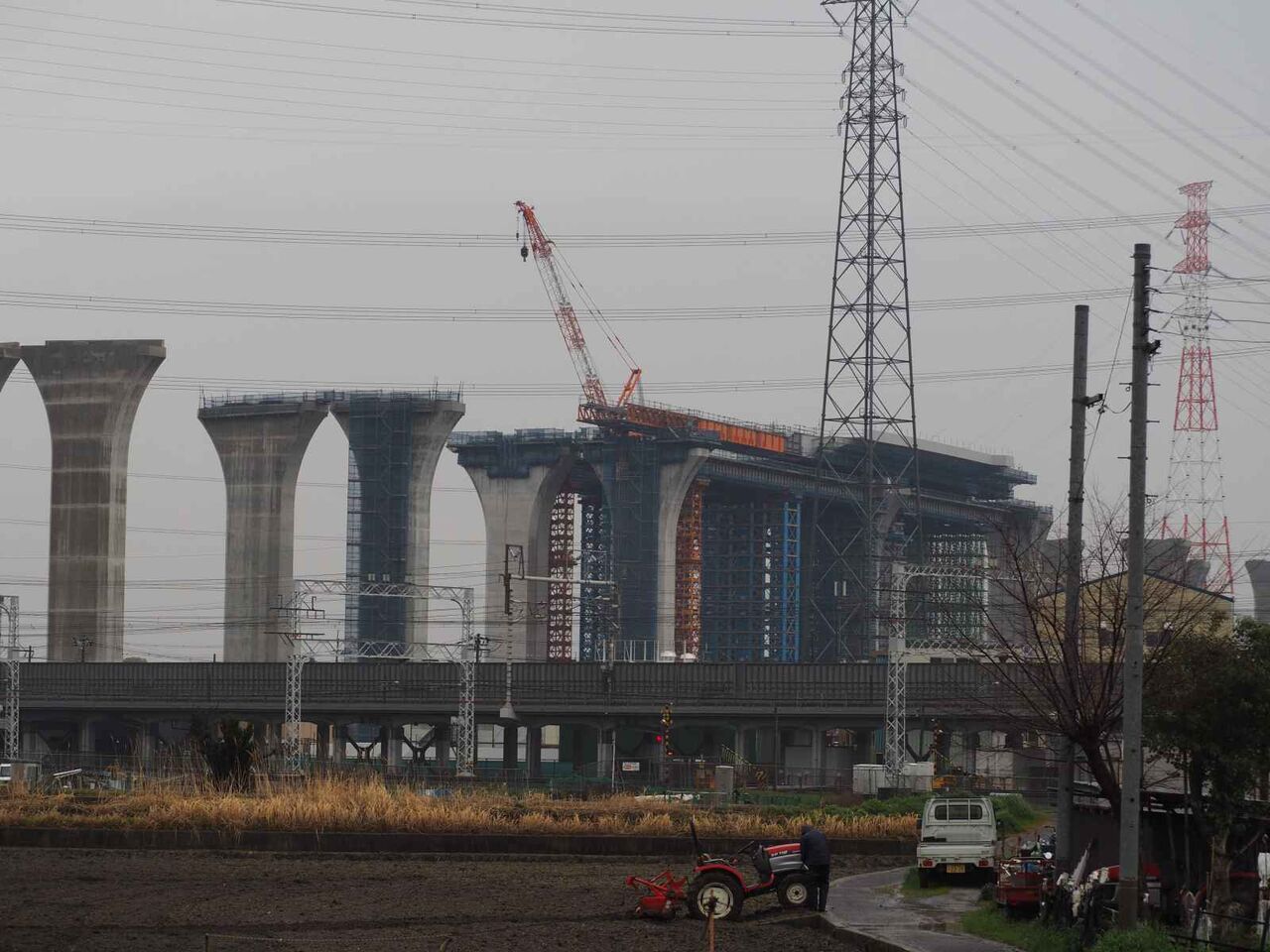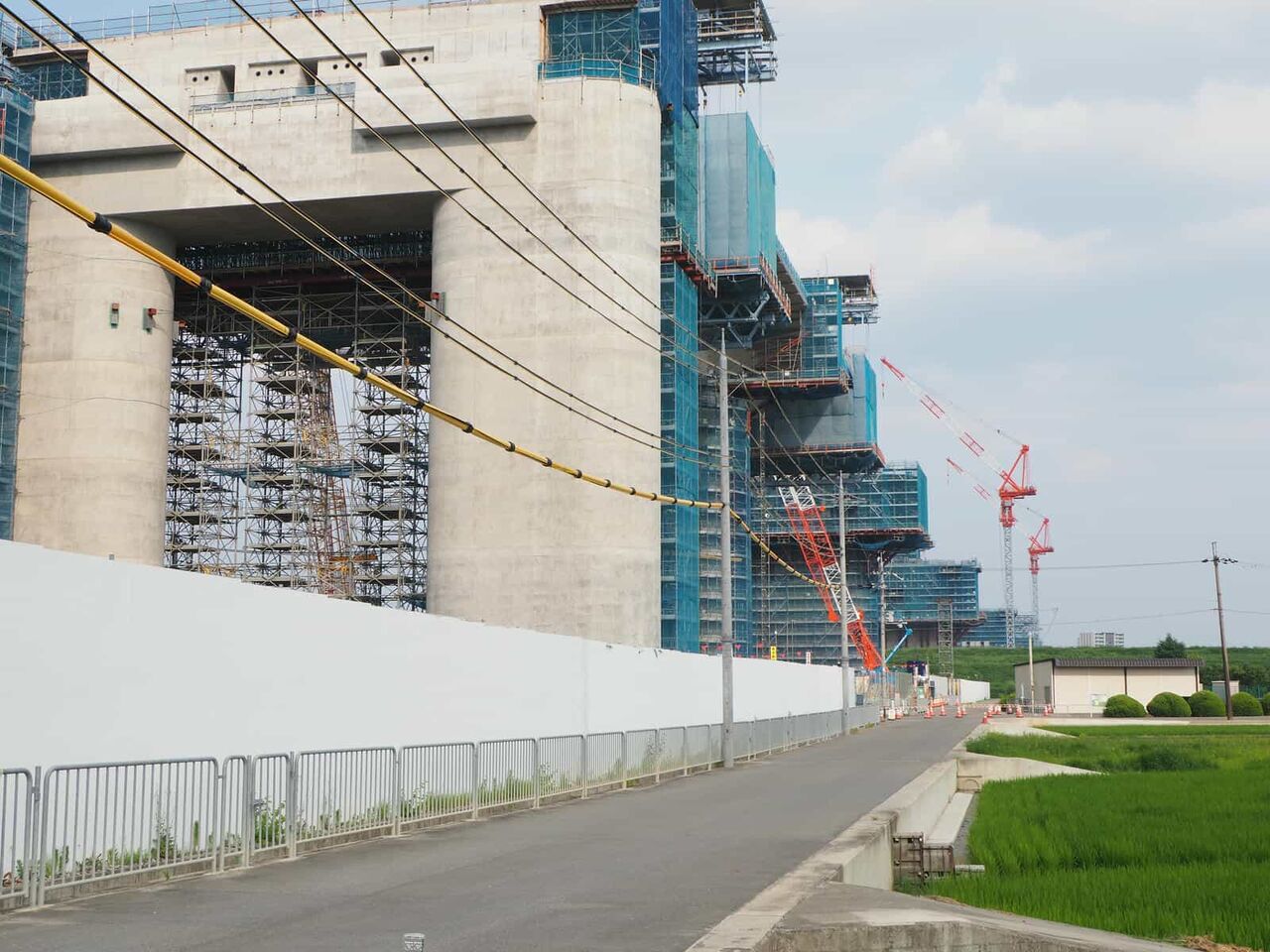 最後にこれは国道171号線を越えて、新幹線のところまできたところ。すでにここまでの間の橋脚はすべてかなり進行しています。