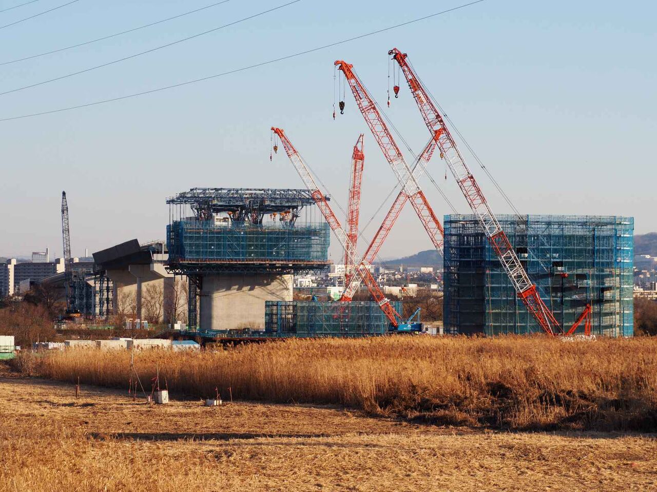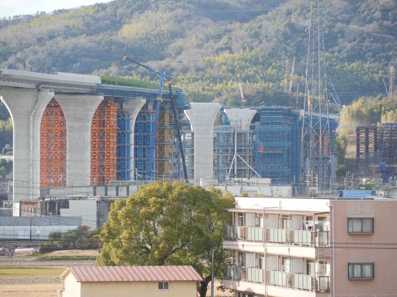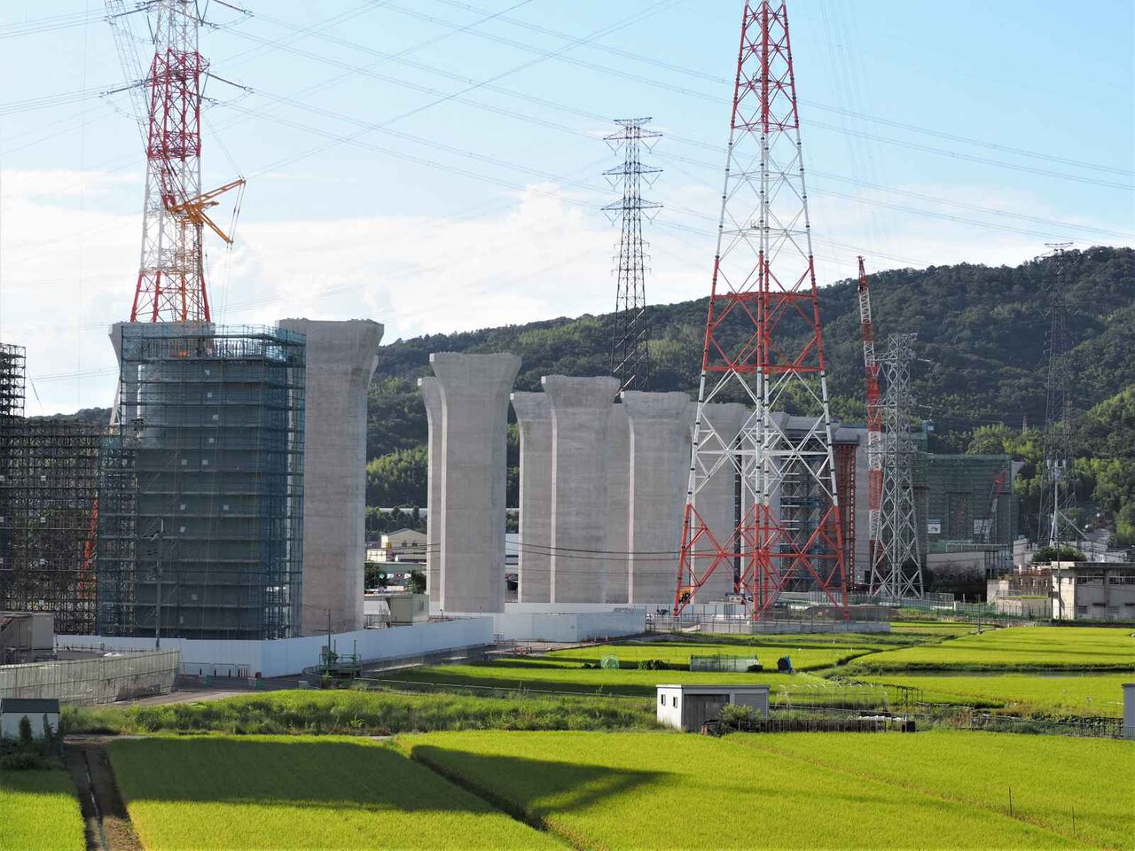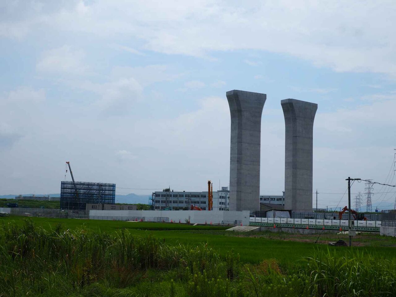 最後にこれは国道171号線を越えて、新幹線のところまできたところ。すでにここまでの間の橋脚はすべてかなり進行しています。