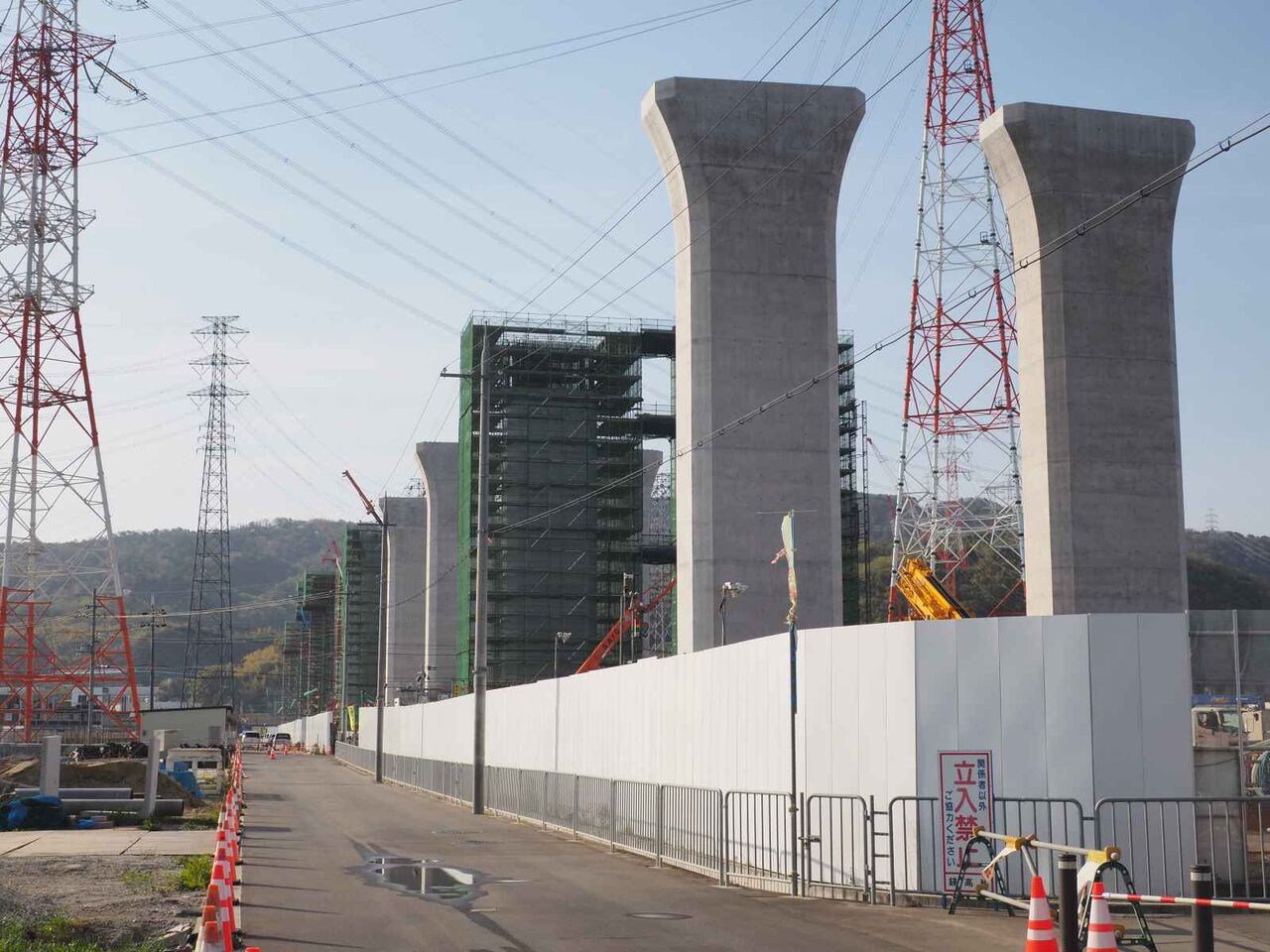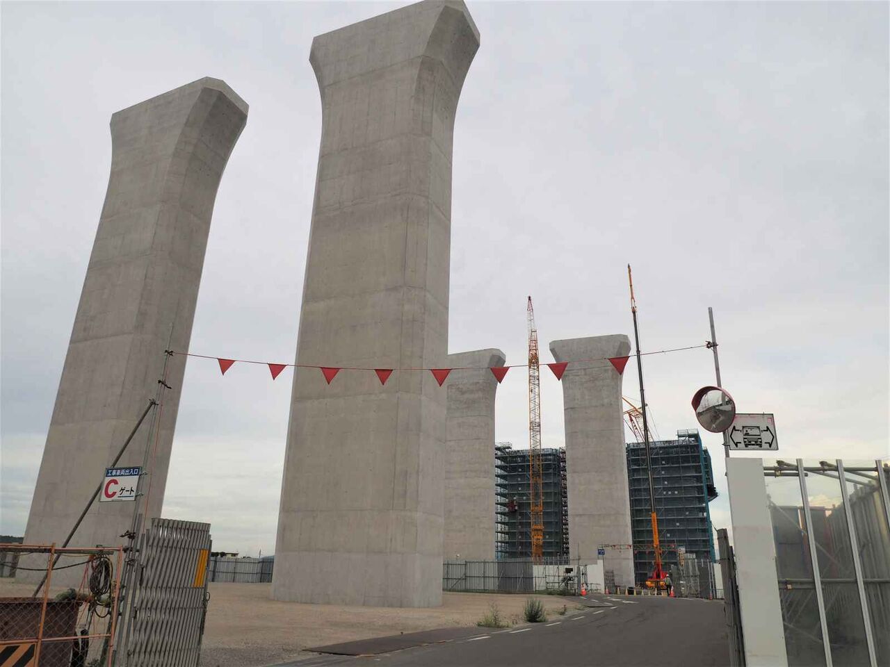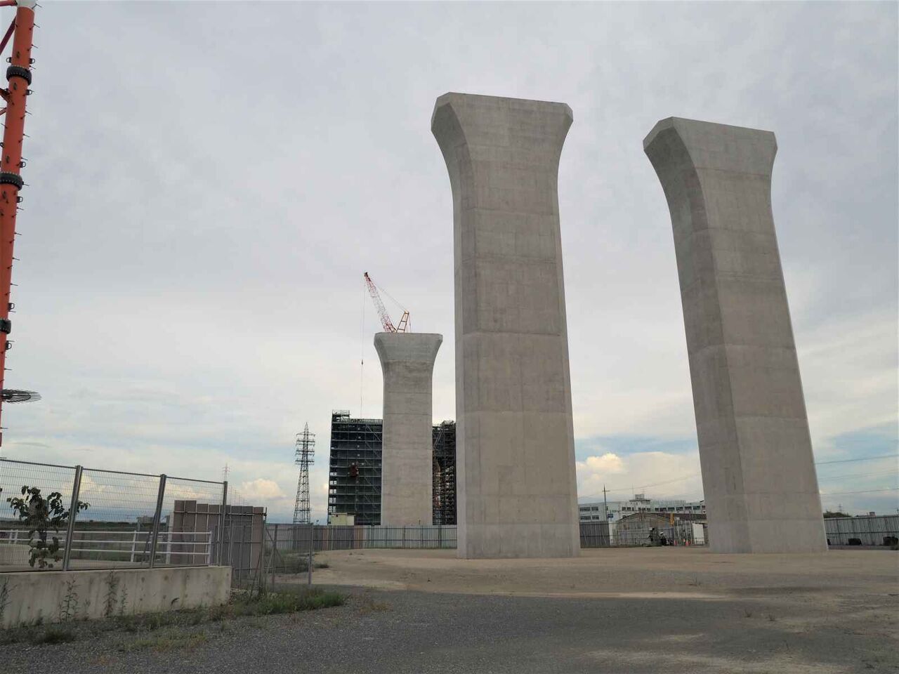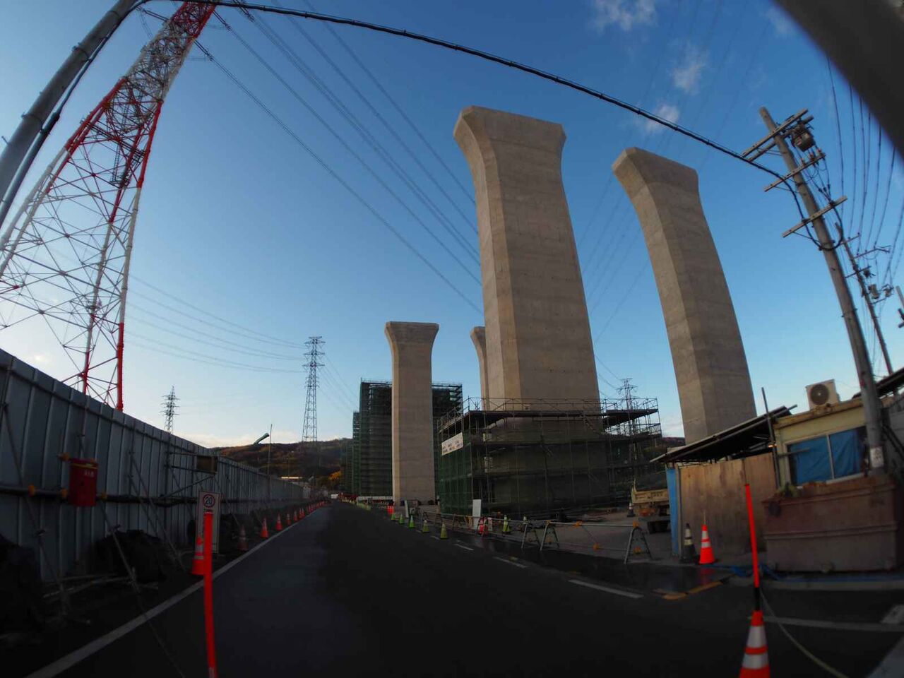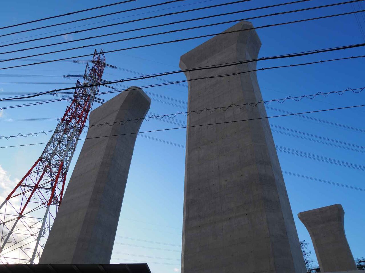 出来上がっている橋脚の高さが気になります。おそらく30mくらいあると思います。