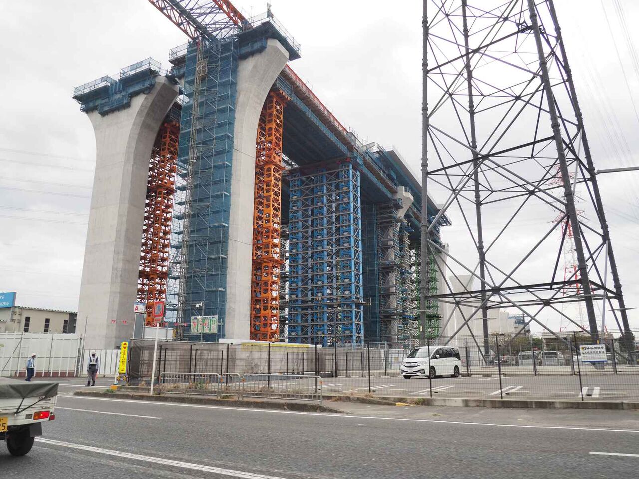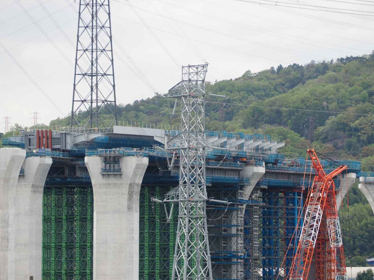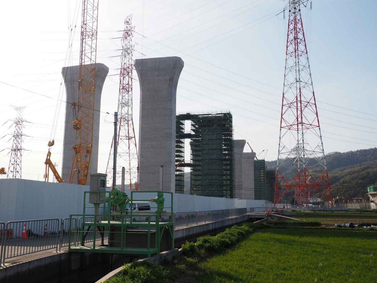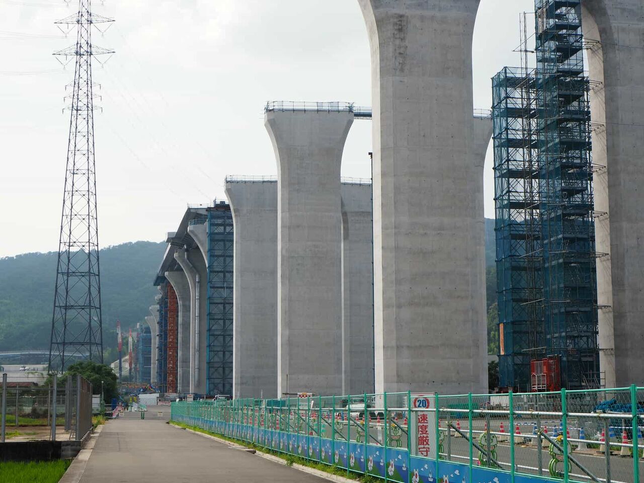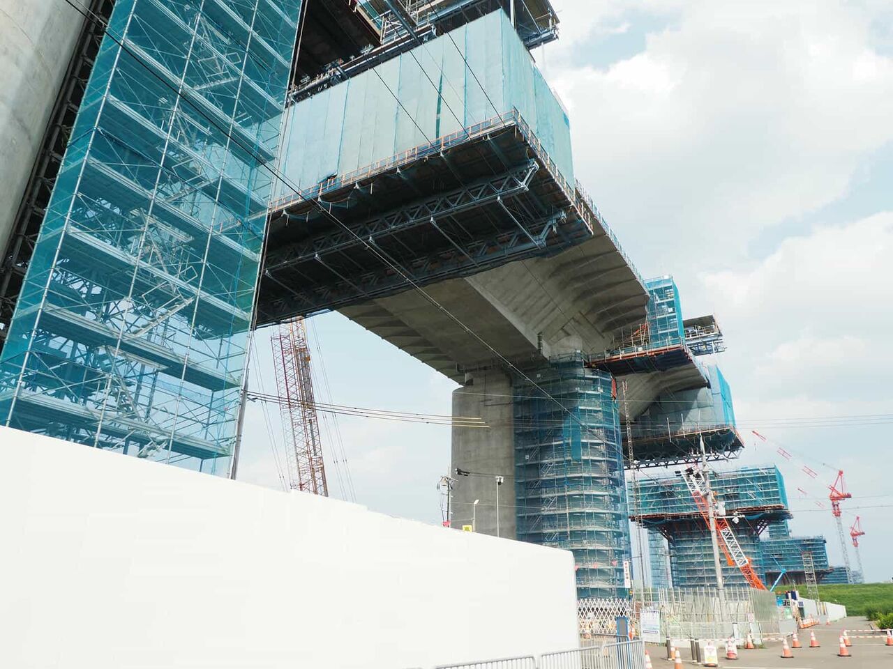 出来上がっている橋脚の高さが気になります。おそらく30mくらいあると思います。