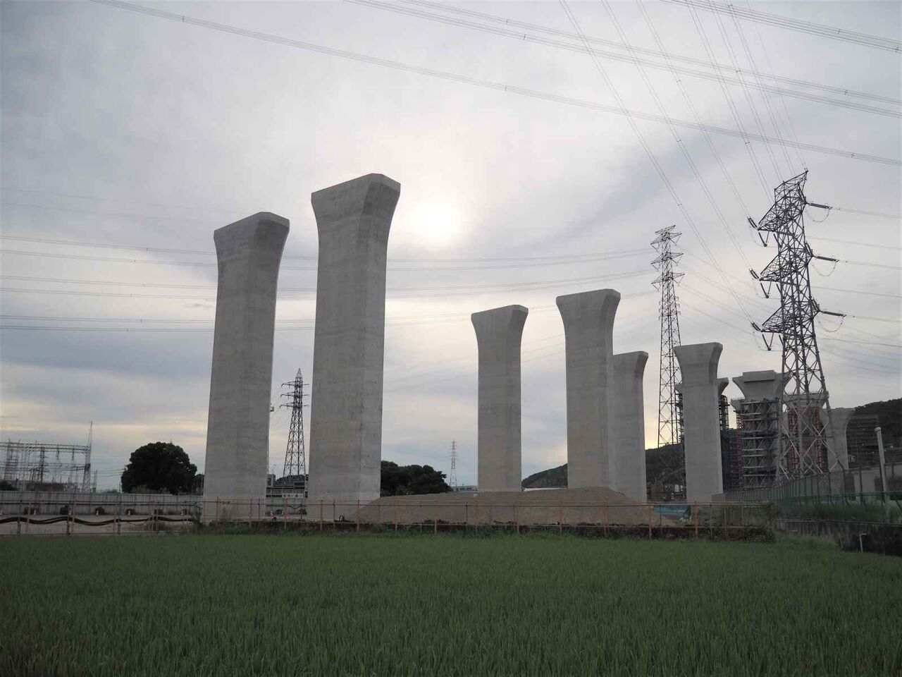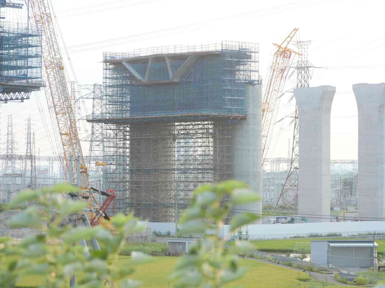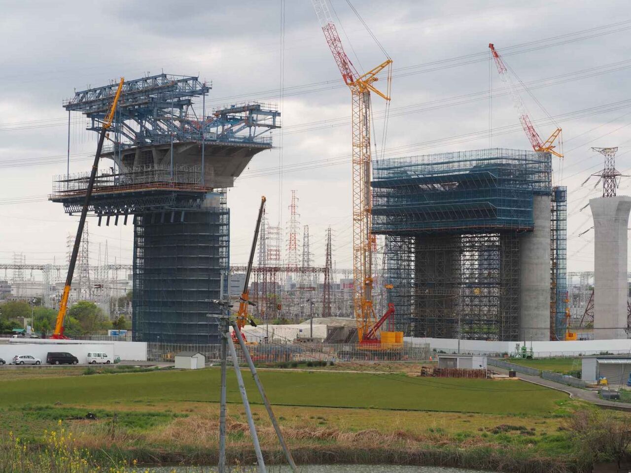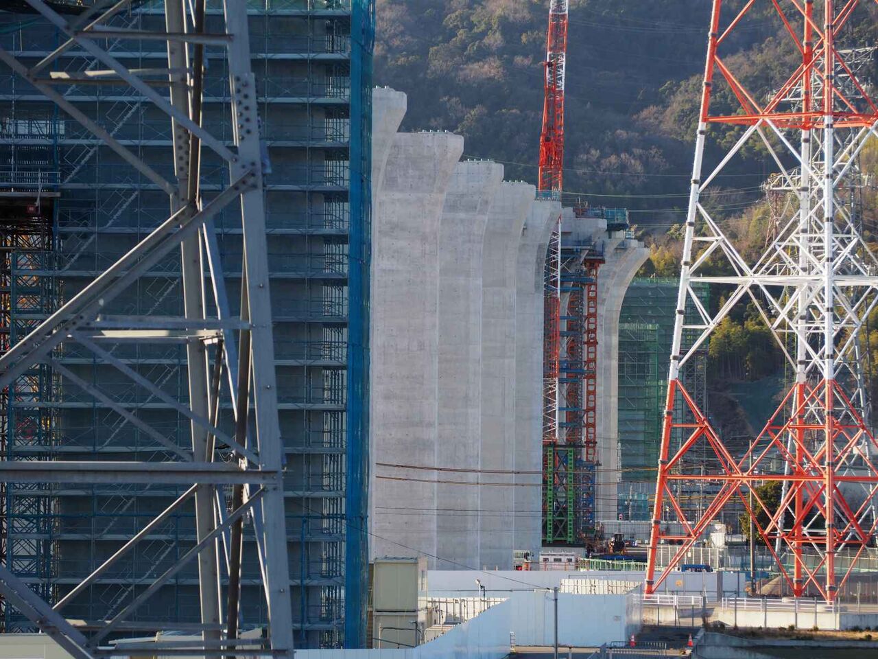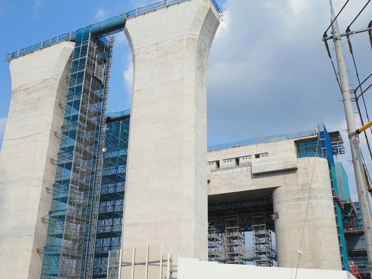 出来上がっている橋脚の高さが気になります。おそらく30mくらいあると思います。