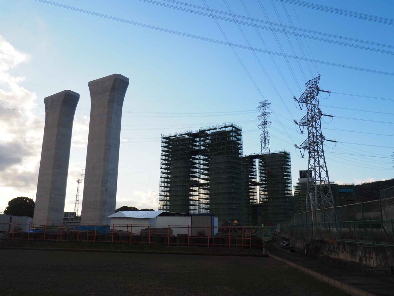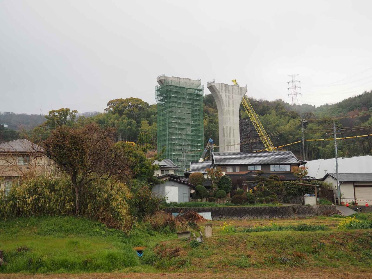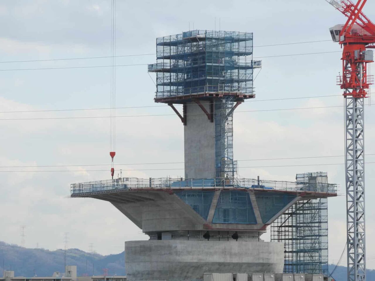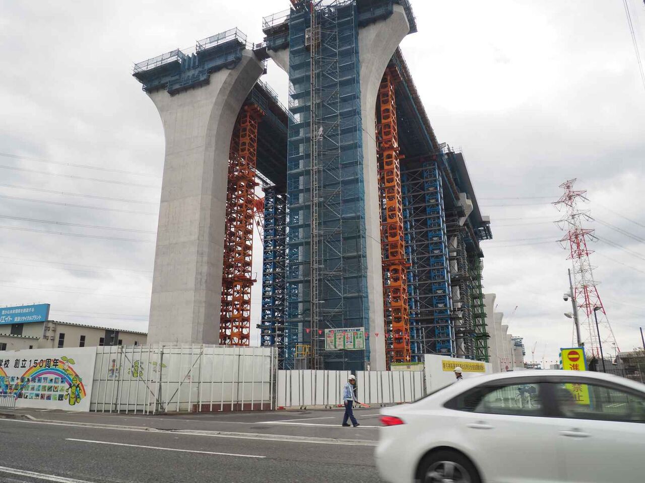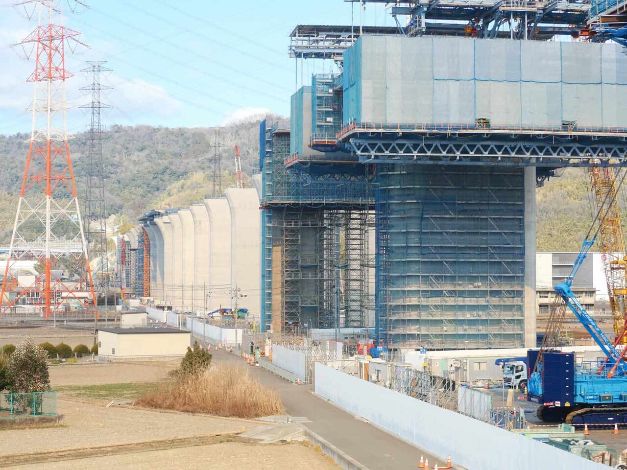 出来上がっている橋脚の高さが気になります。おそらく30mくらいあると思います。