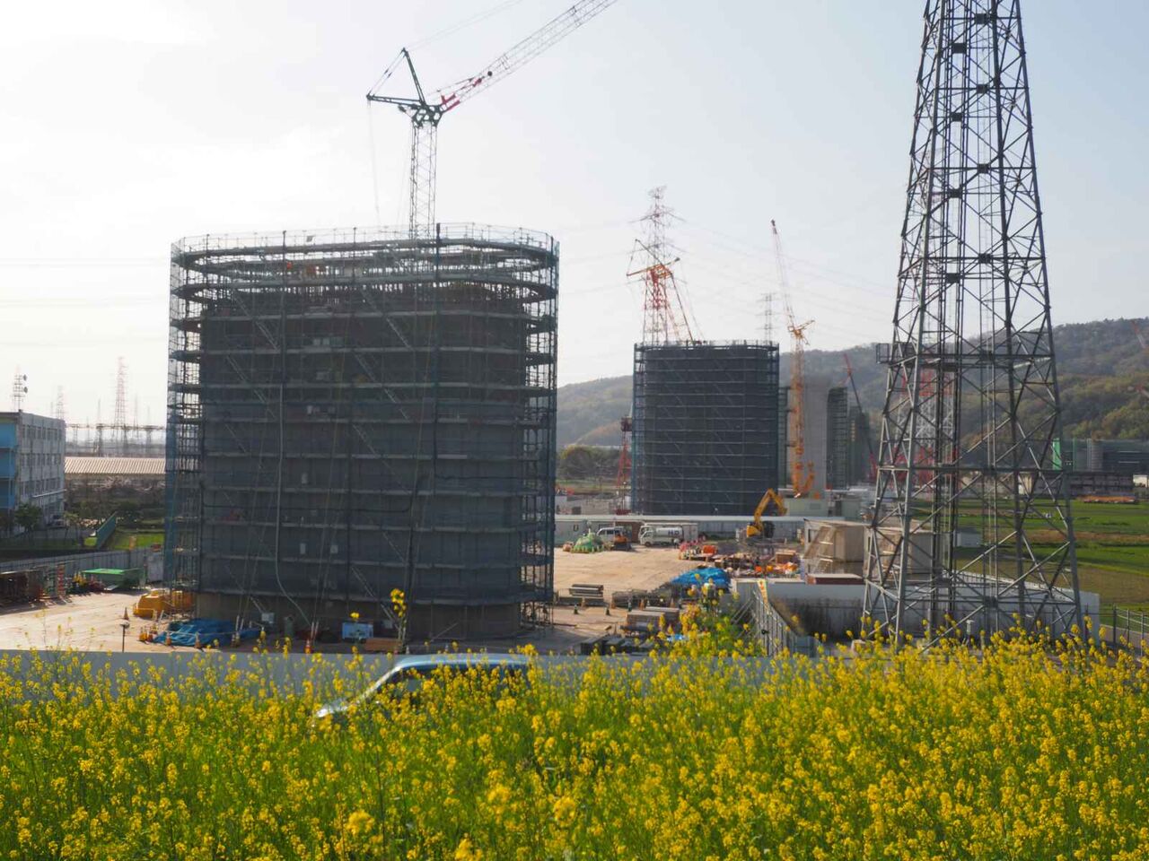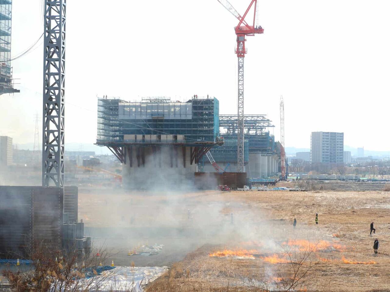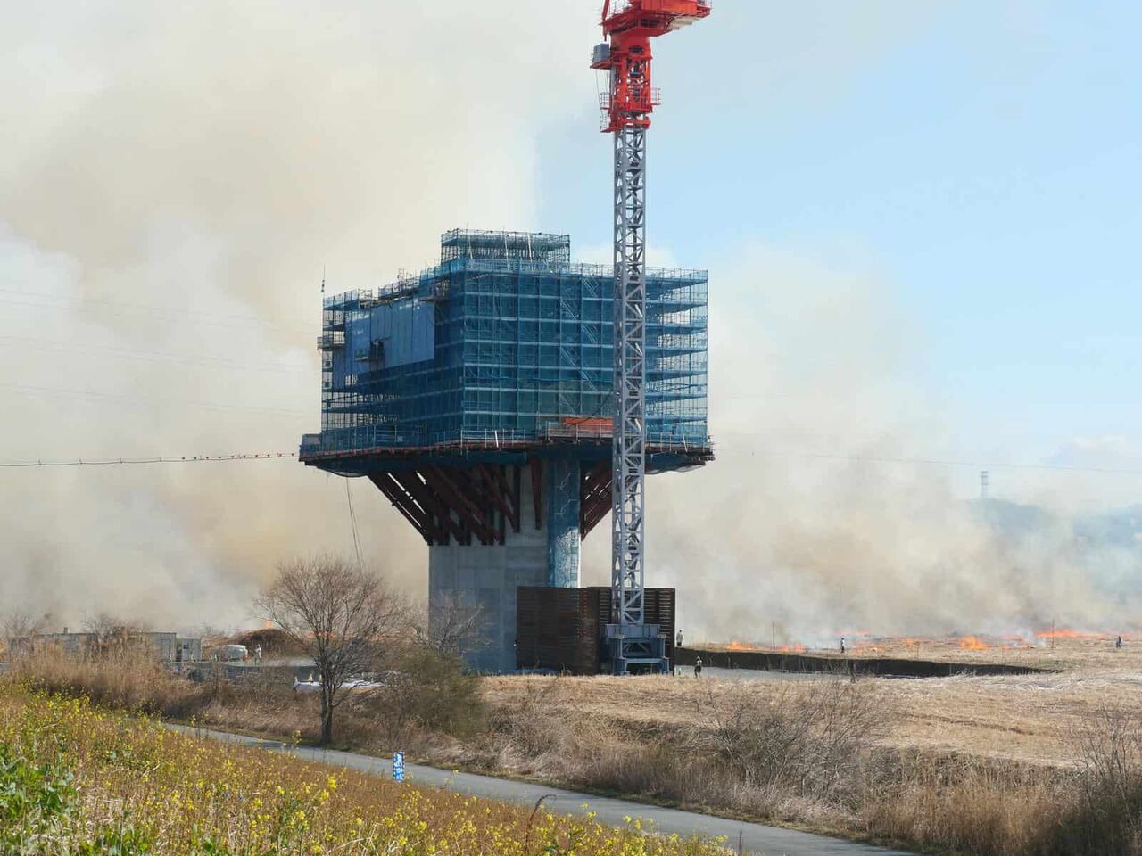 工事中の橋脚の近くで燃えていますが、将来開通したらどうなるのか気になります。新名神を止めるんじゃないかとという人もいましたが。。