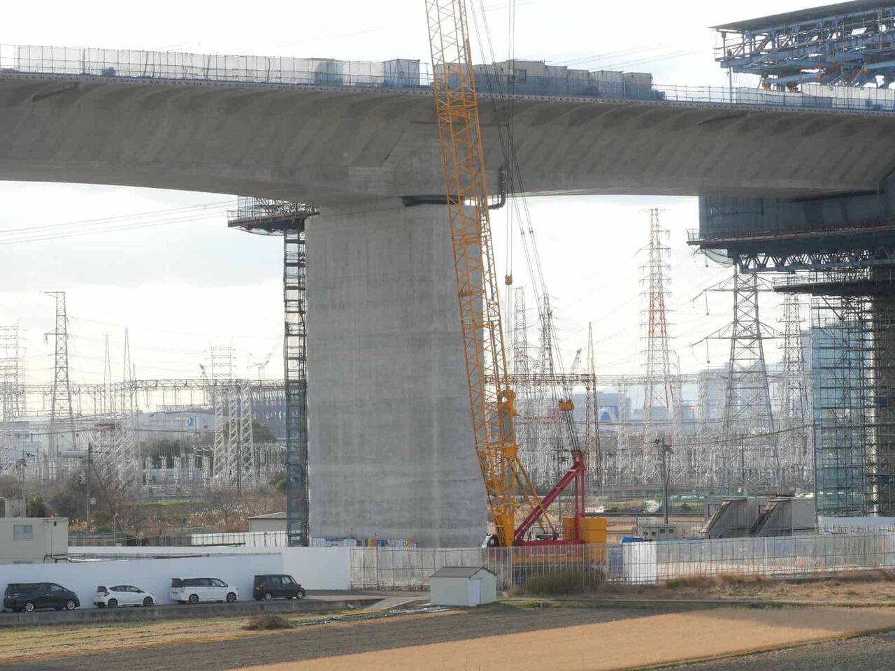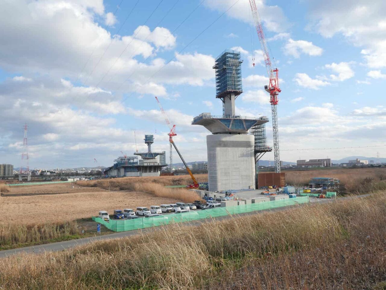 ◆新名神淀川橋工事 上牧付近の橋脚工事近くのようすです。(2023年1月)この場所を観察するのは半年ぶりです。どのようになっているのでしょうか?