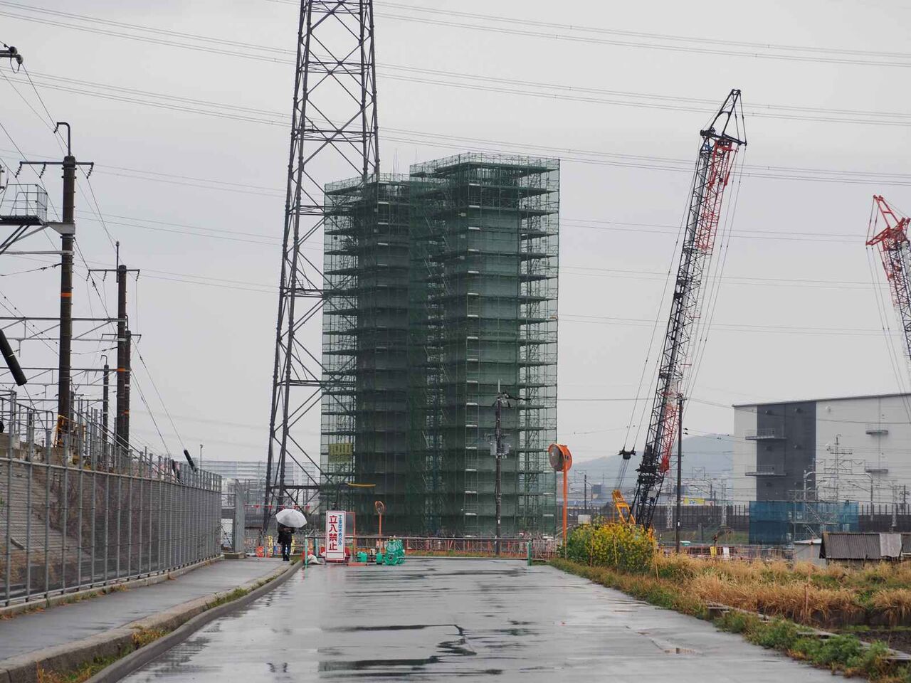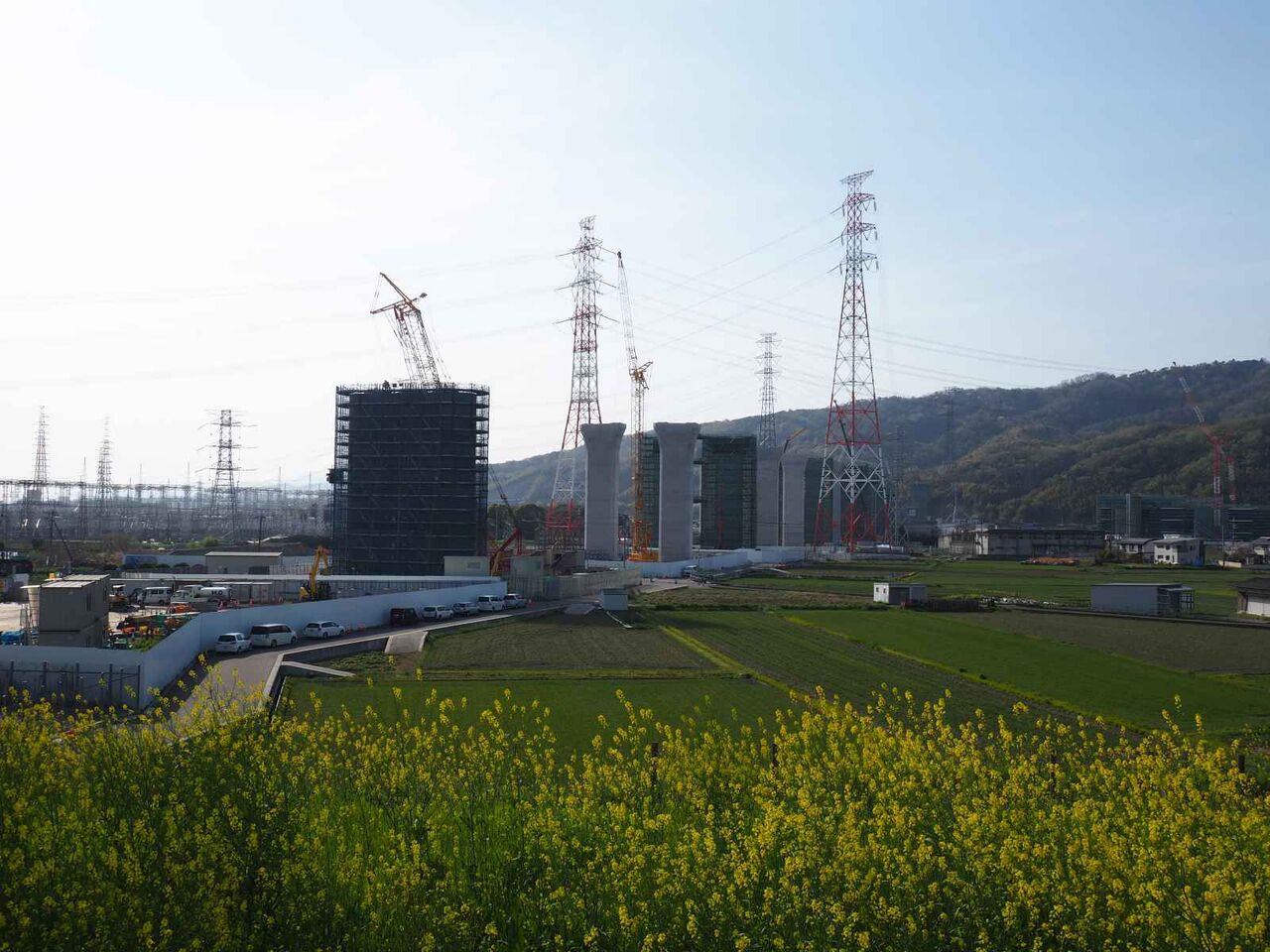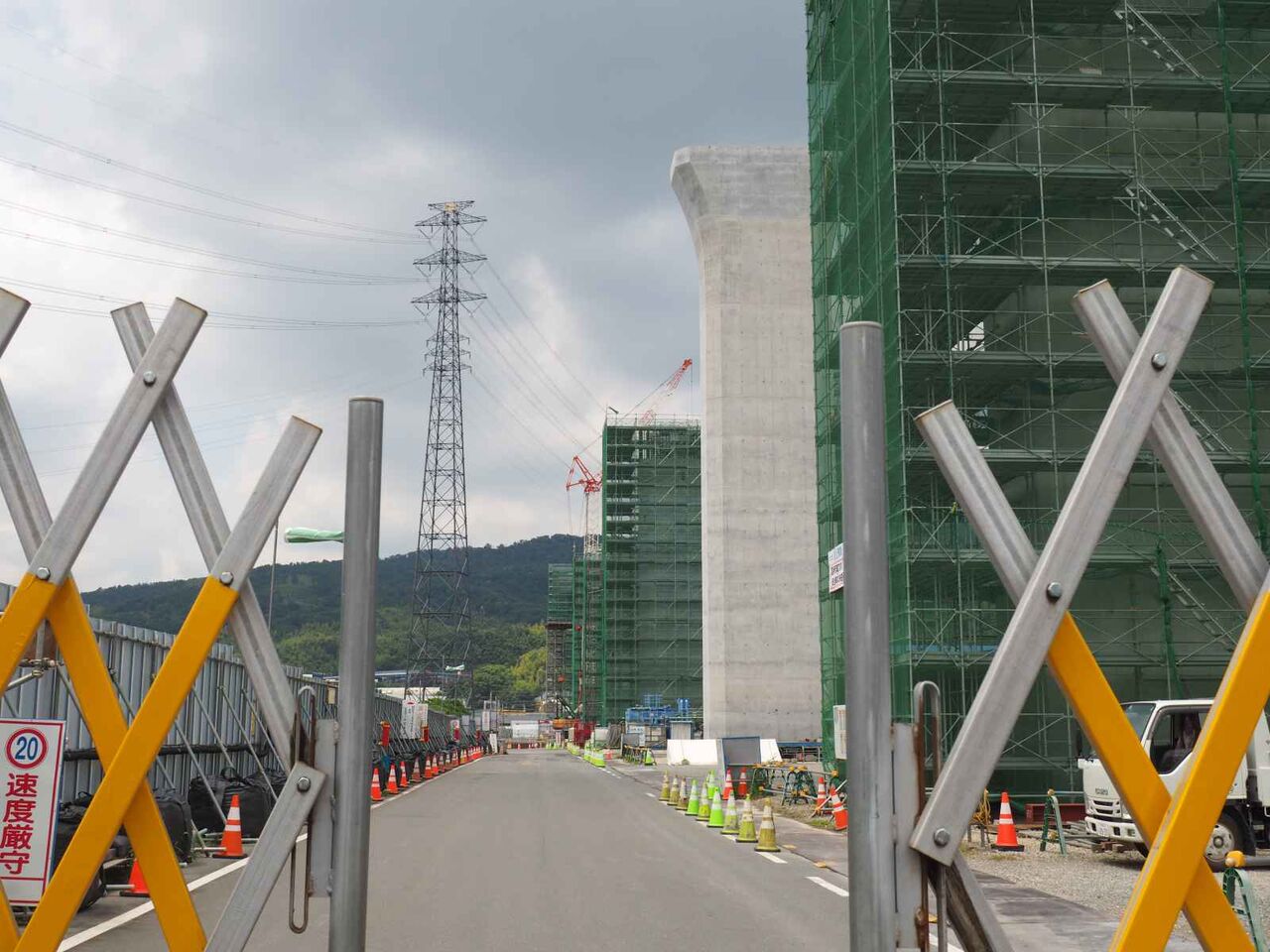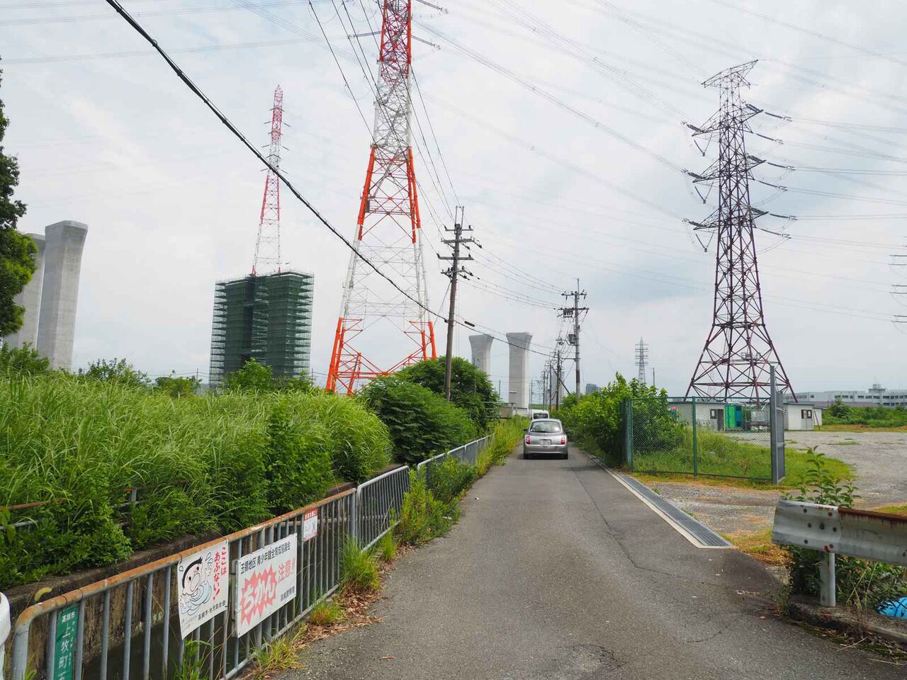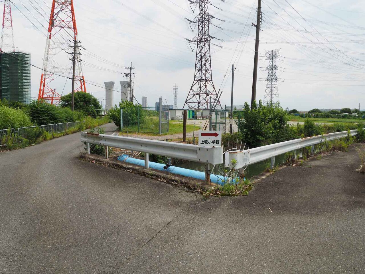 訪れたのは橋脚工事の西側からで、変電所近くの上牧小学校に行く道沿い。