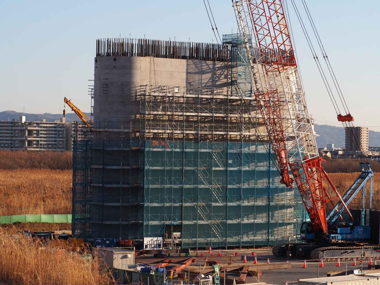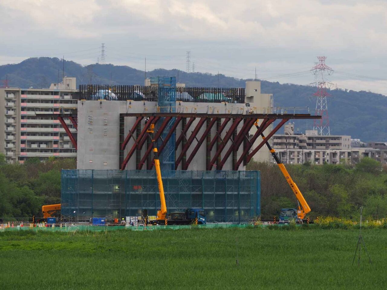 淀川堤防に近い1本目はすでに下半分ができています。
