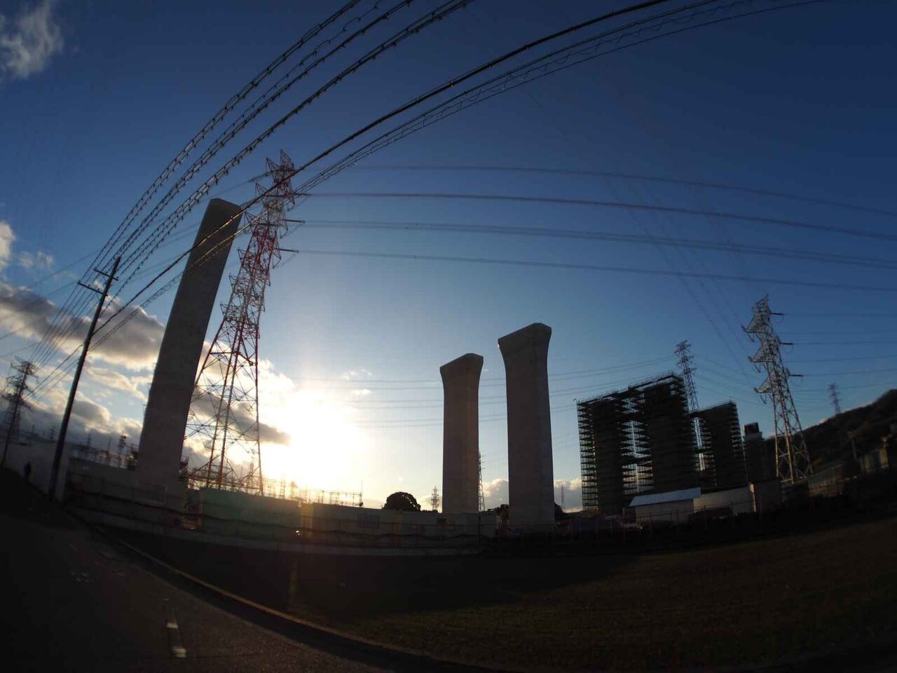 国道171号線付近は1本ではなくて、建設中の橋脚がたくさん。