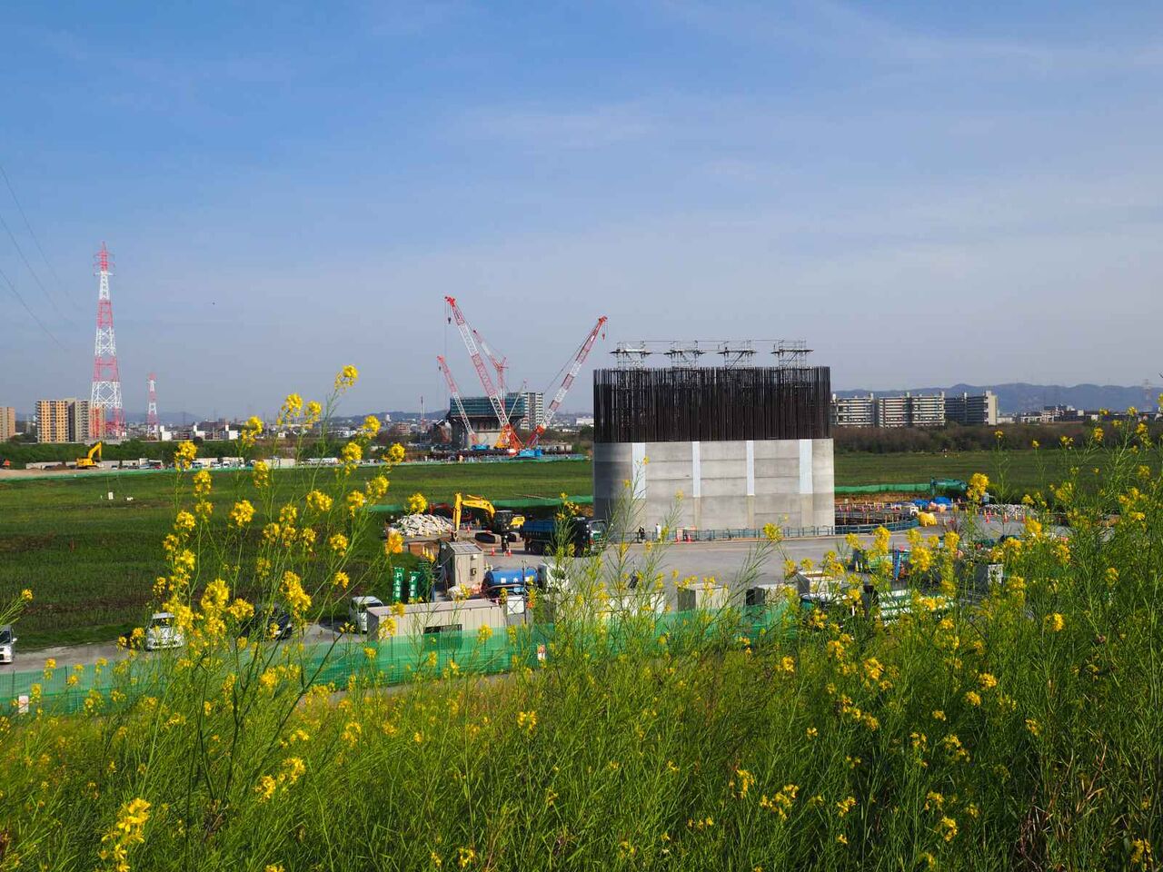 淀川の中の橋脚もだいぶできているようですが、今回はそこは見えませんでしたので次回確認します。