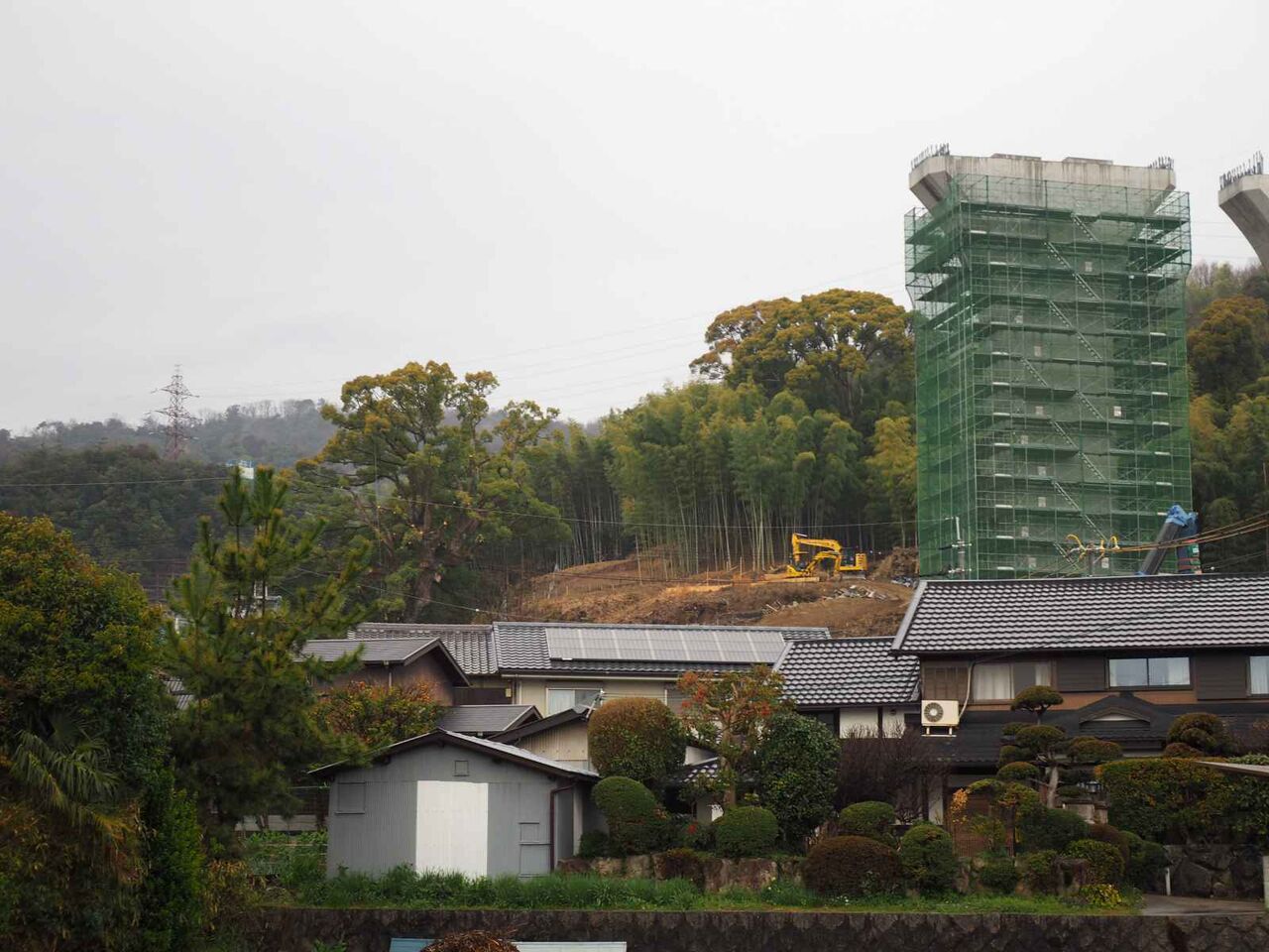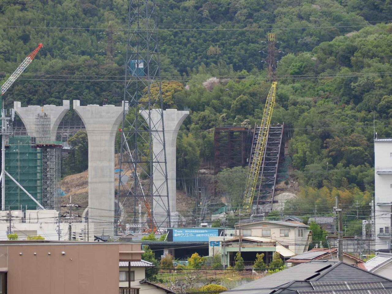巣っと並んでいて、一乗寺の奥の山で工事をしている桟橋まで一直線に見えます。