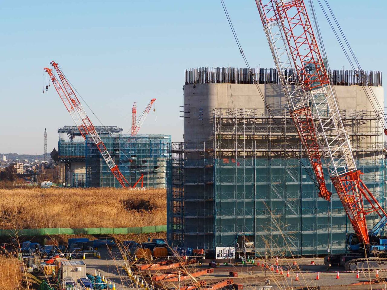 ▶新名神淀川橋工事 新幹線沿いから国道171号線の間の橋脚工事のようす 2022年9月