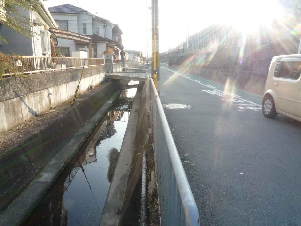 南端の新幹線沿い水路側はこんな感じ
