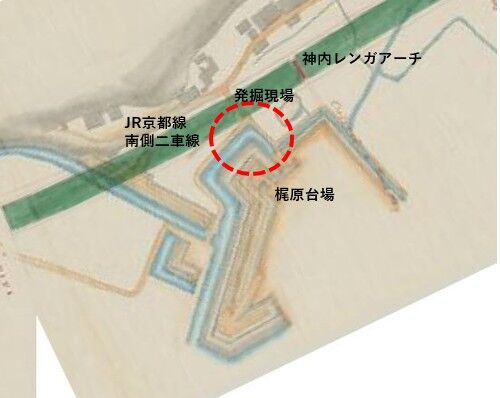 ◆【梶原台場跡】 JR京都線の線路の横の梶原台場あとの発掘調査がなされているようです!!