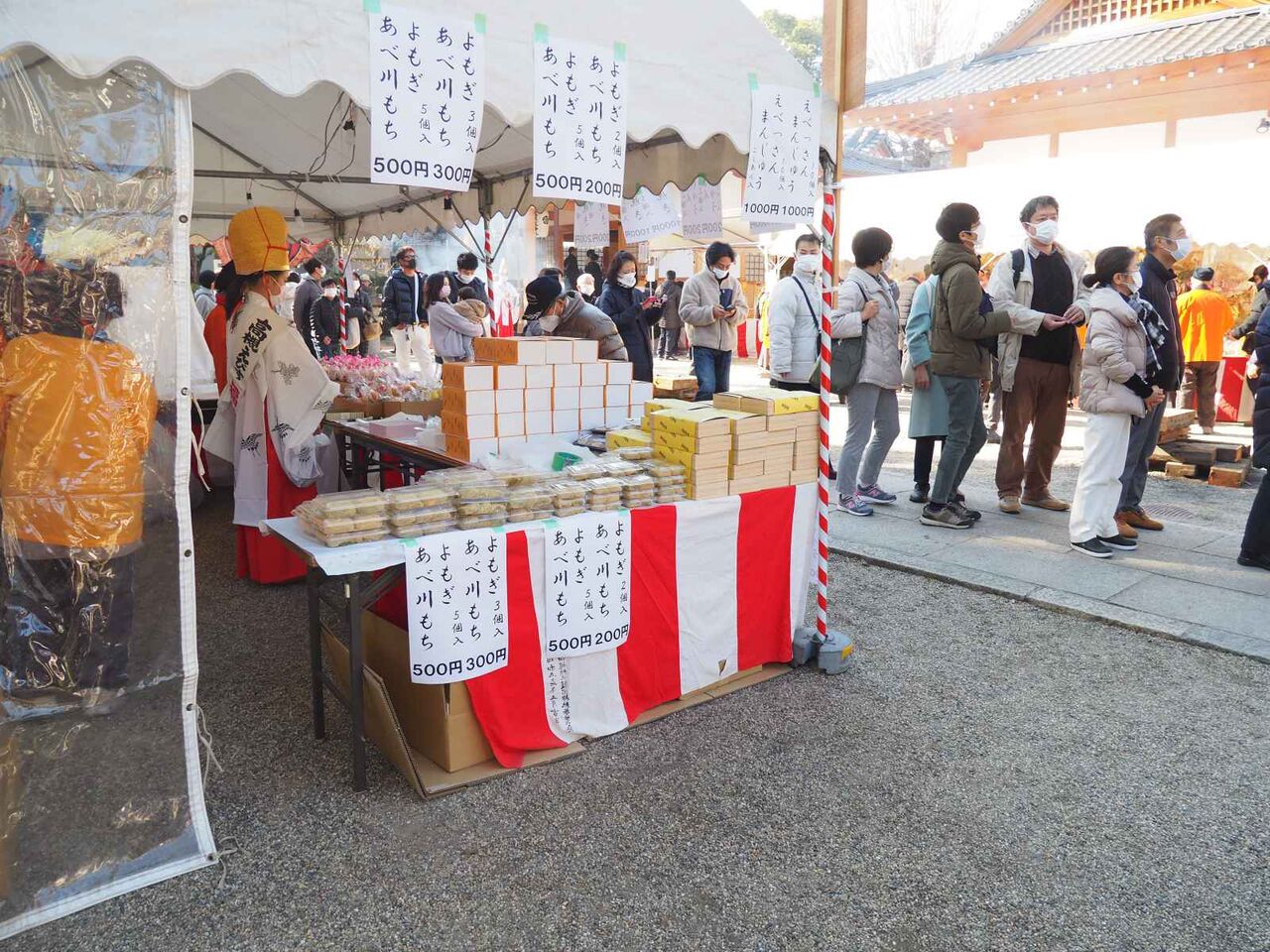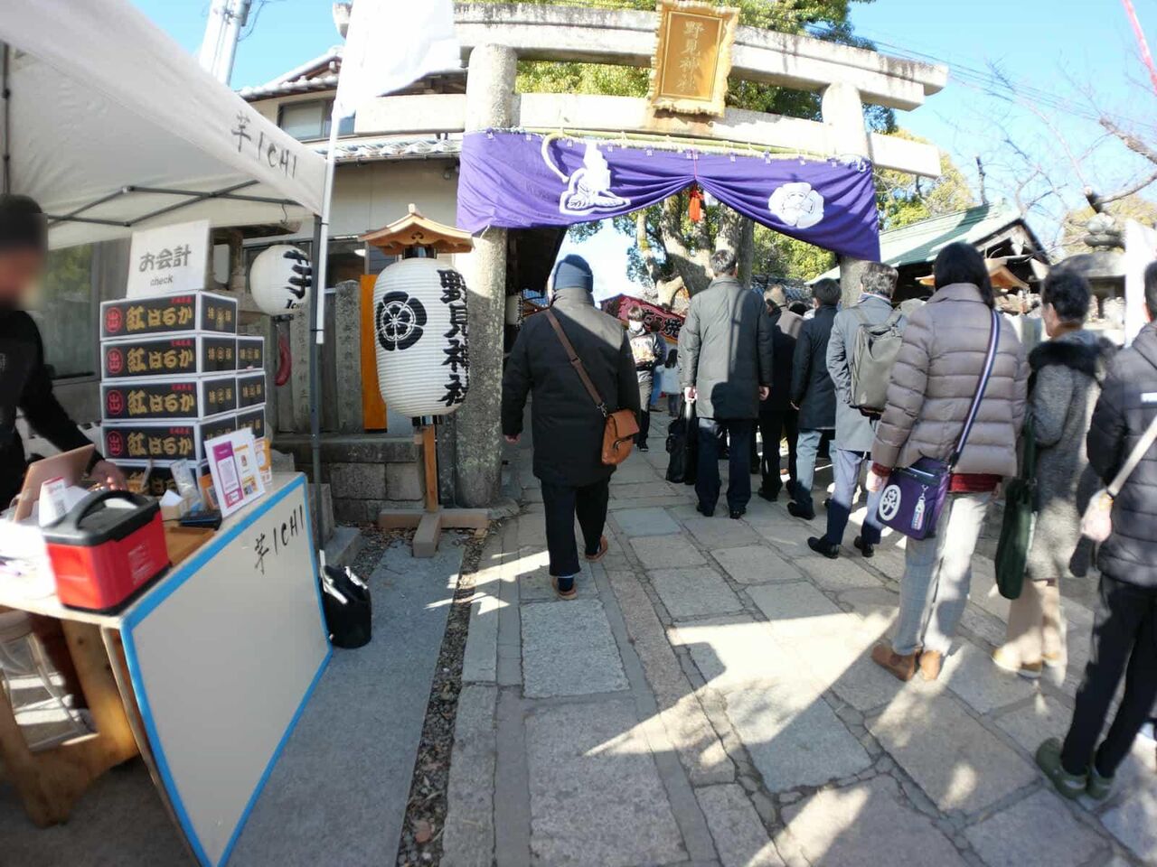 野見神社のほうも多くの方が並べられていて右手には饅頭販売、甘酒などもあり、
