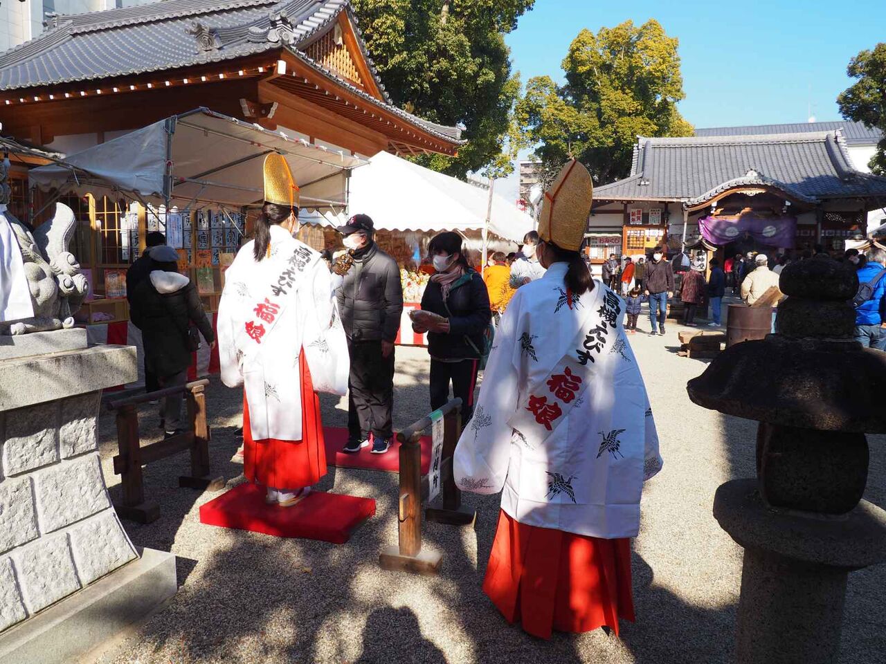 境内では、高槻えびす神社の前では、福娘さんのお祓いのほか