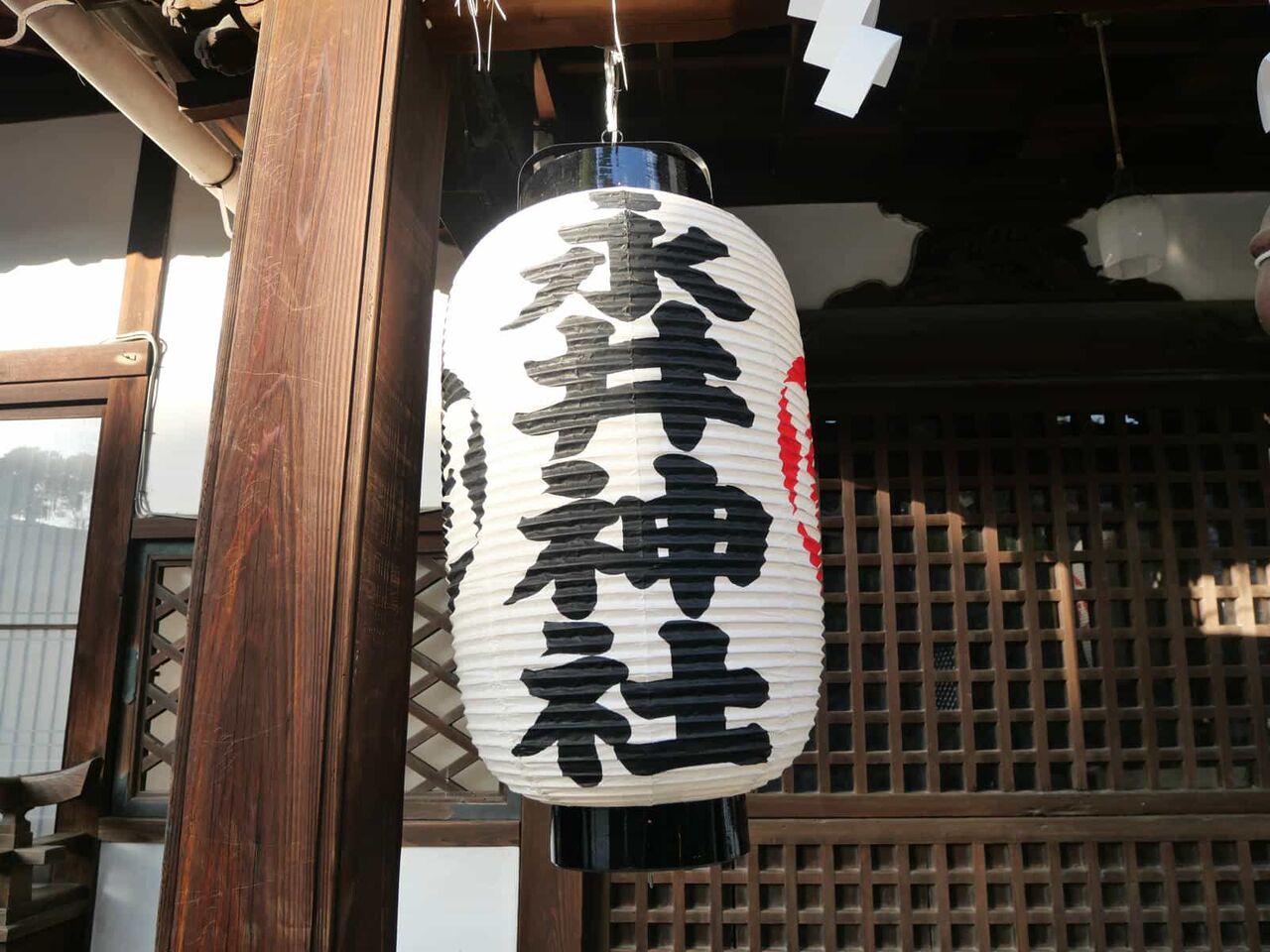 お昼前、野見神社東に並ぶ提灯の前の歩道を通り