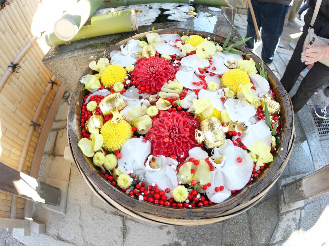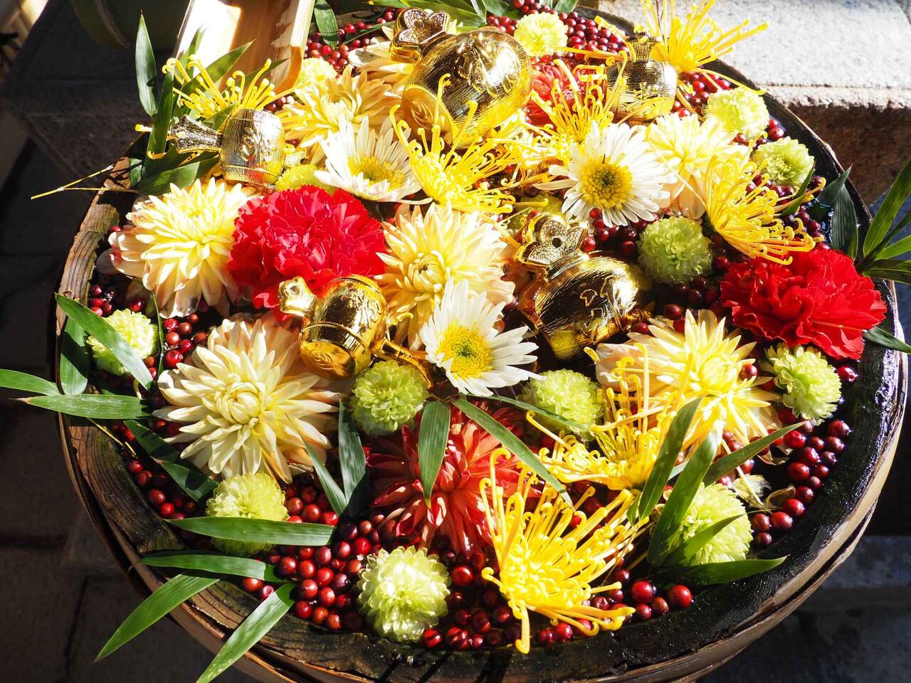 石田花店さんのご奉納の花手水