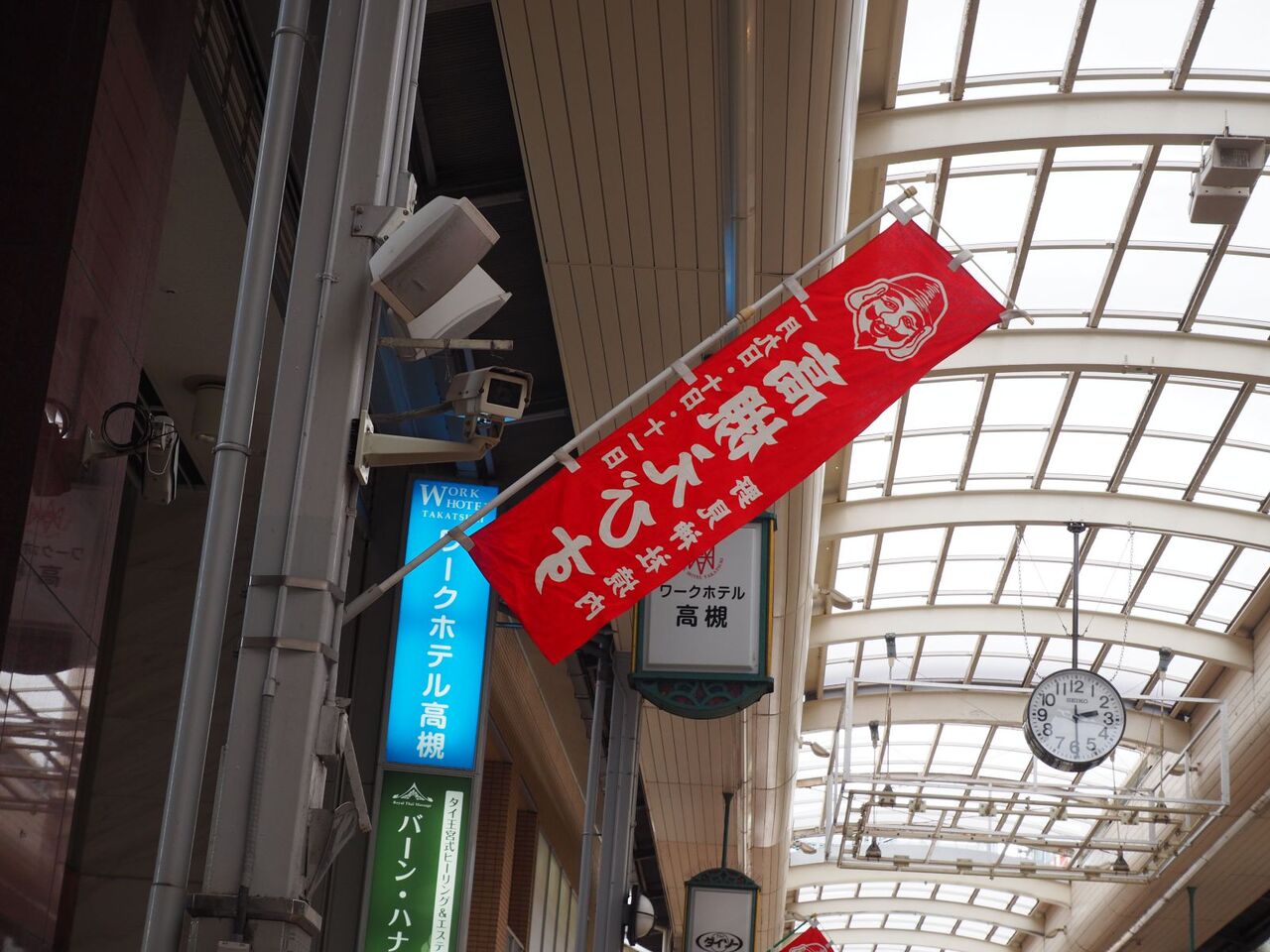 高槻センター街も、年末最終週で南側ののぼりは、えびす祭りになりました。