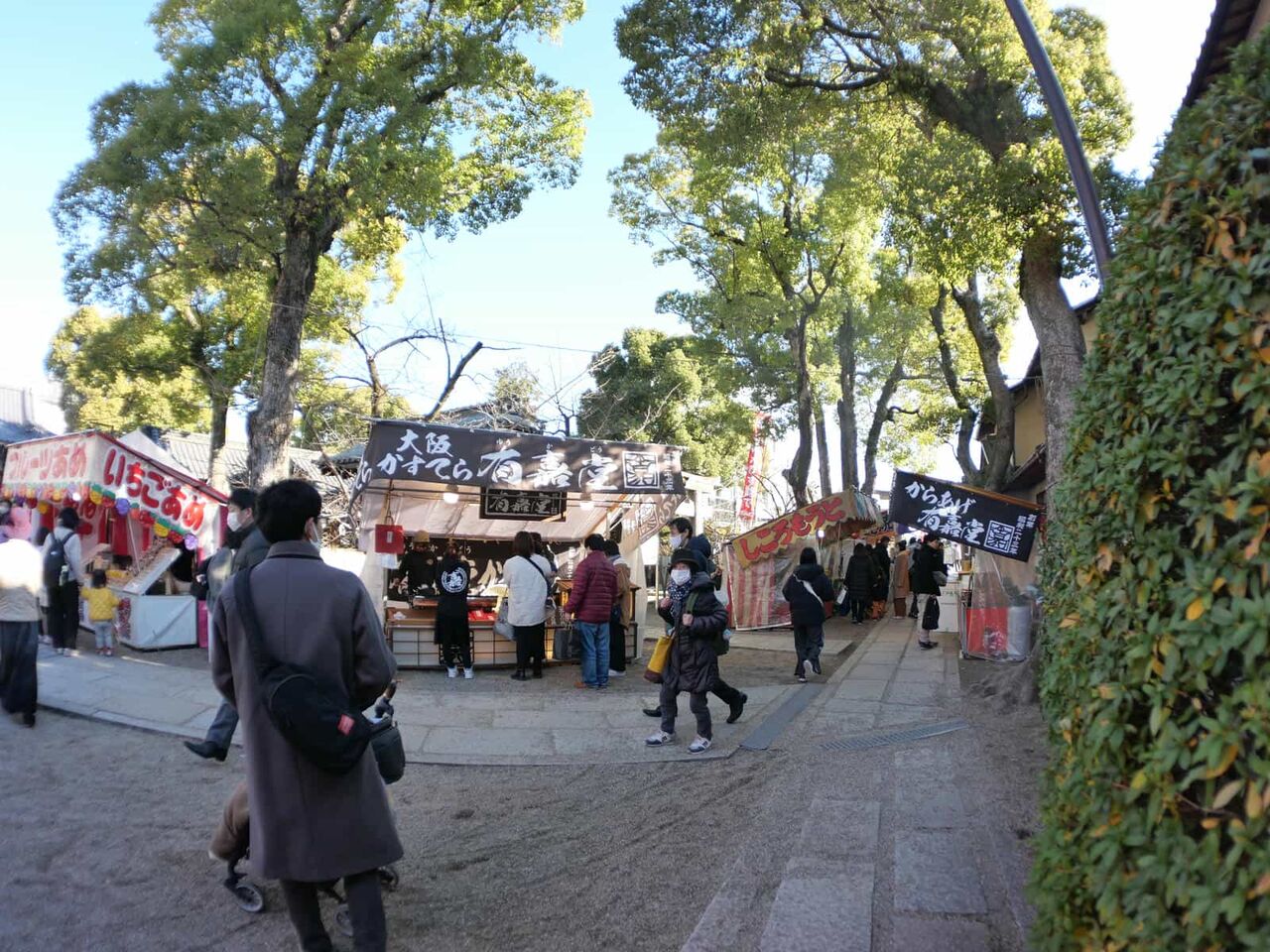 なお、境内の東側ではお店がたくさんあって