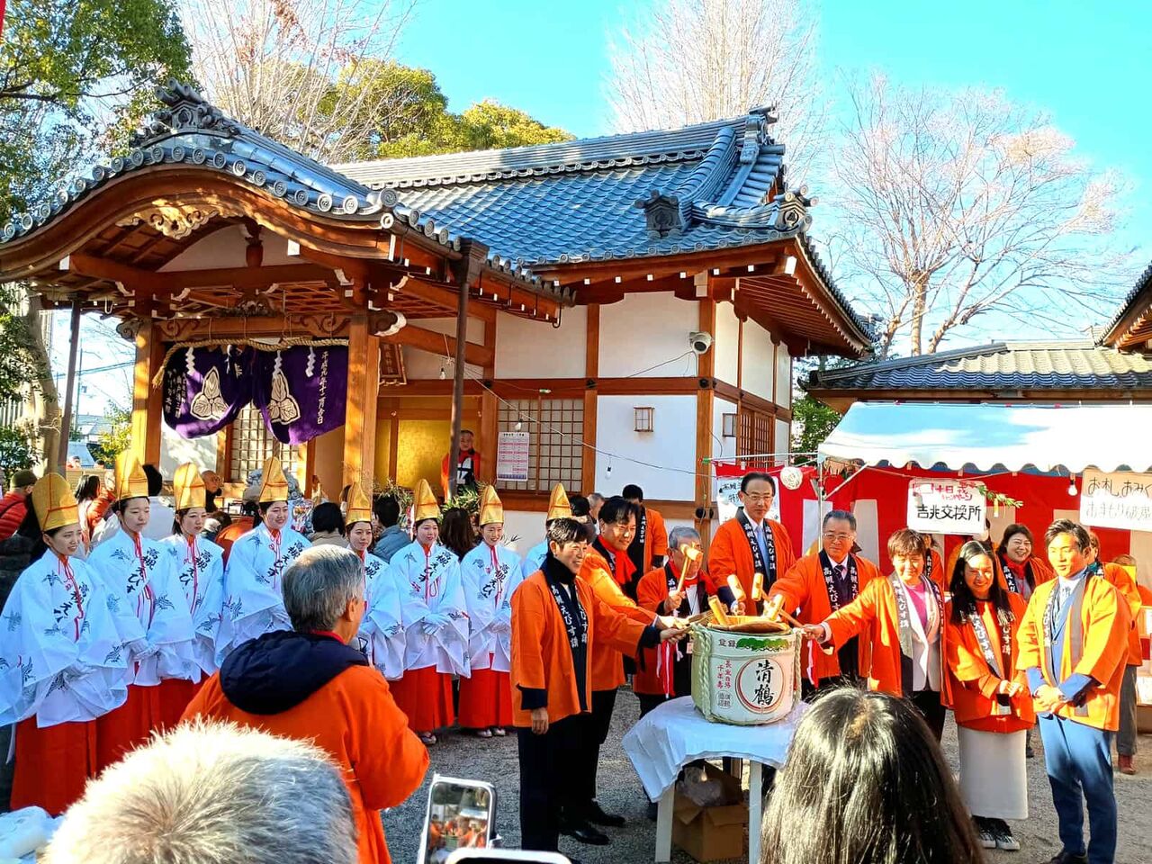 明日も天気が良さそうなので、ひきつづき多くのかたでにぎわいそうですね。明日10時には鏡割りの行事があるようです。