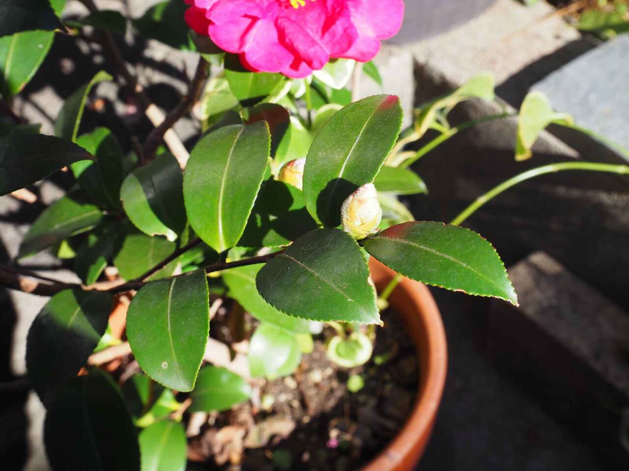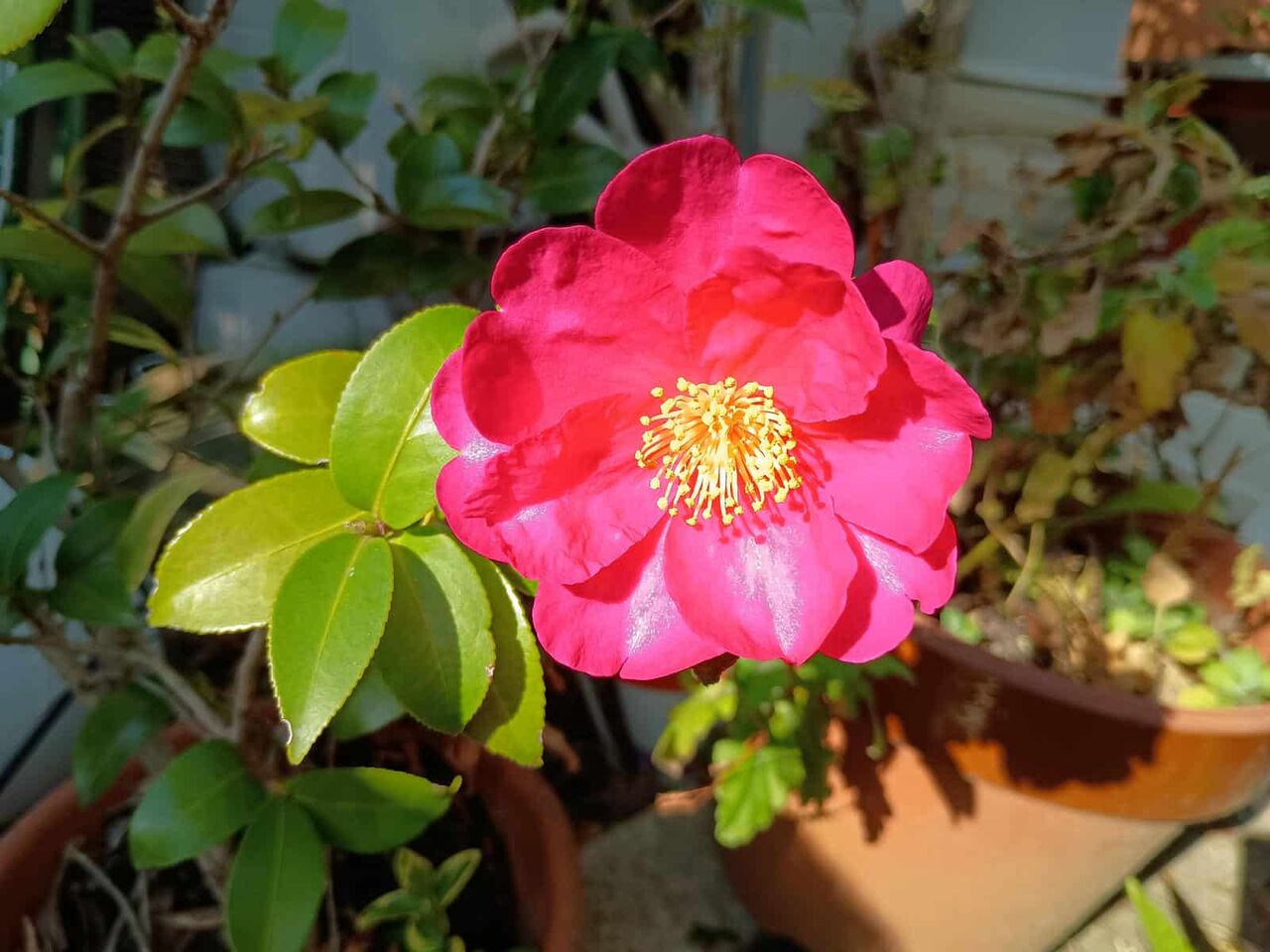 これは、当ブログの庭先の鉢植えの小さなサザンカ