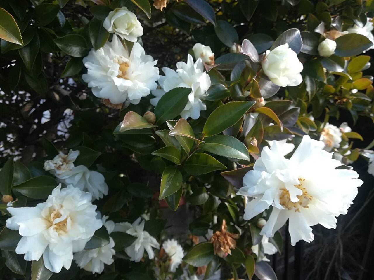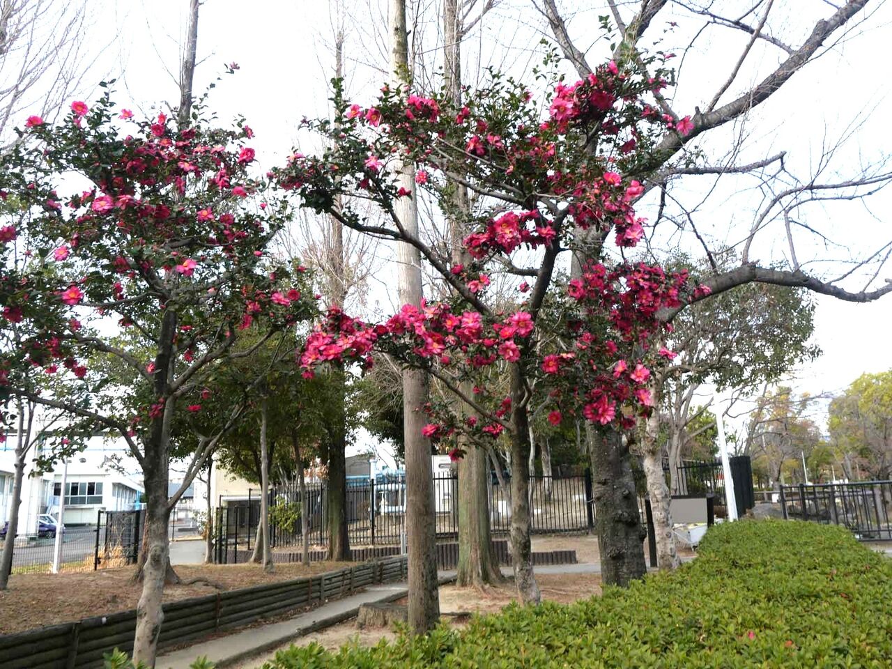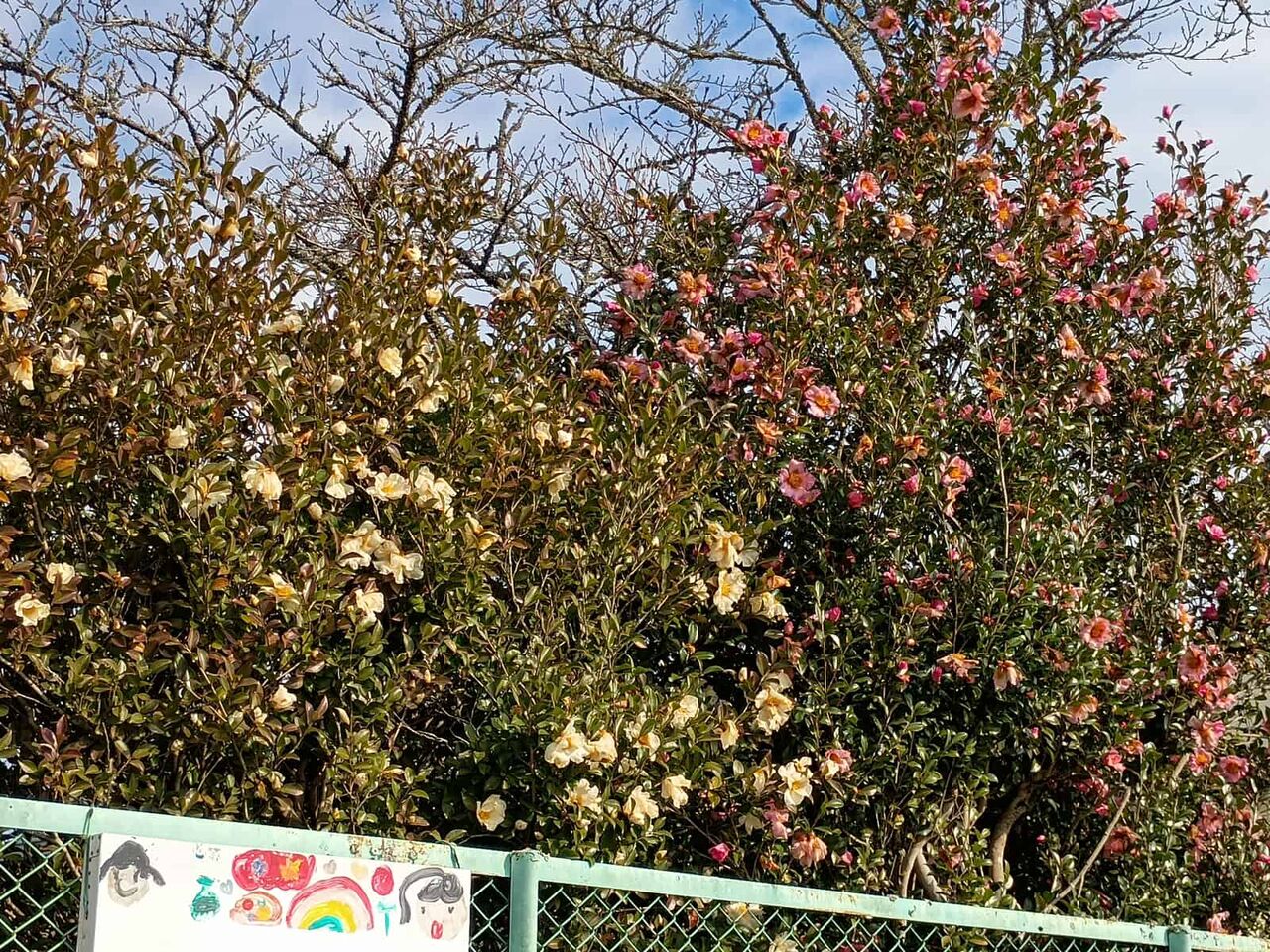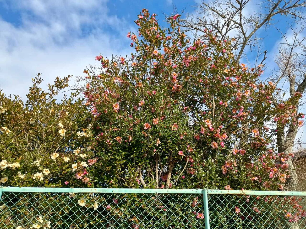 ▶南平台の街路樹 サザンカが満開になってる