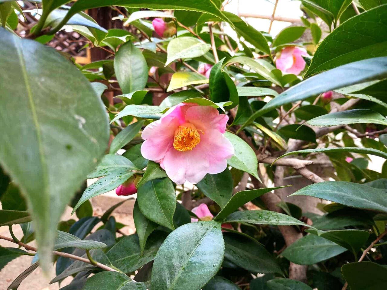引き続き、街かどのサザンカも観察したいと思います。