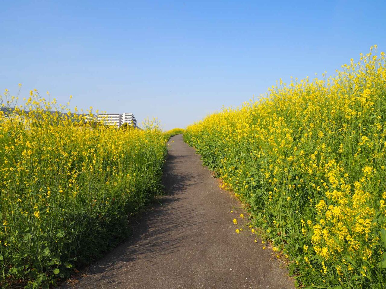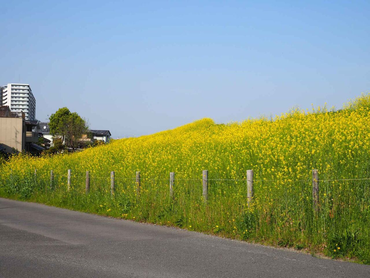 島本町から上牧の方に移動してみます。高浜砲台跡の付近のマンション近く。一面セイヨウカラシナ。