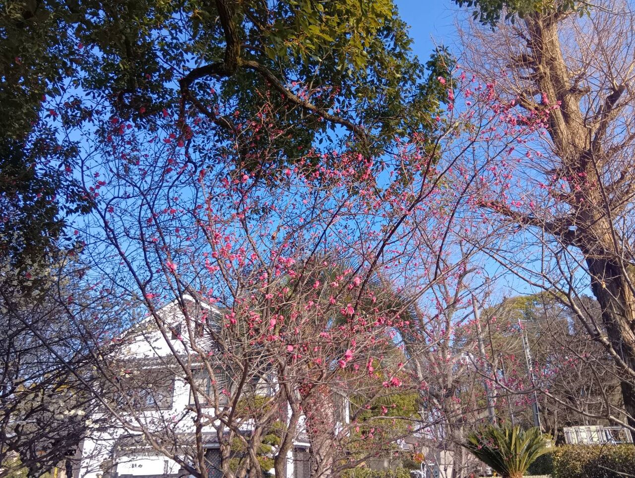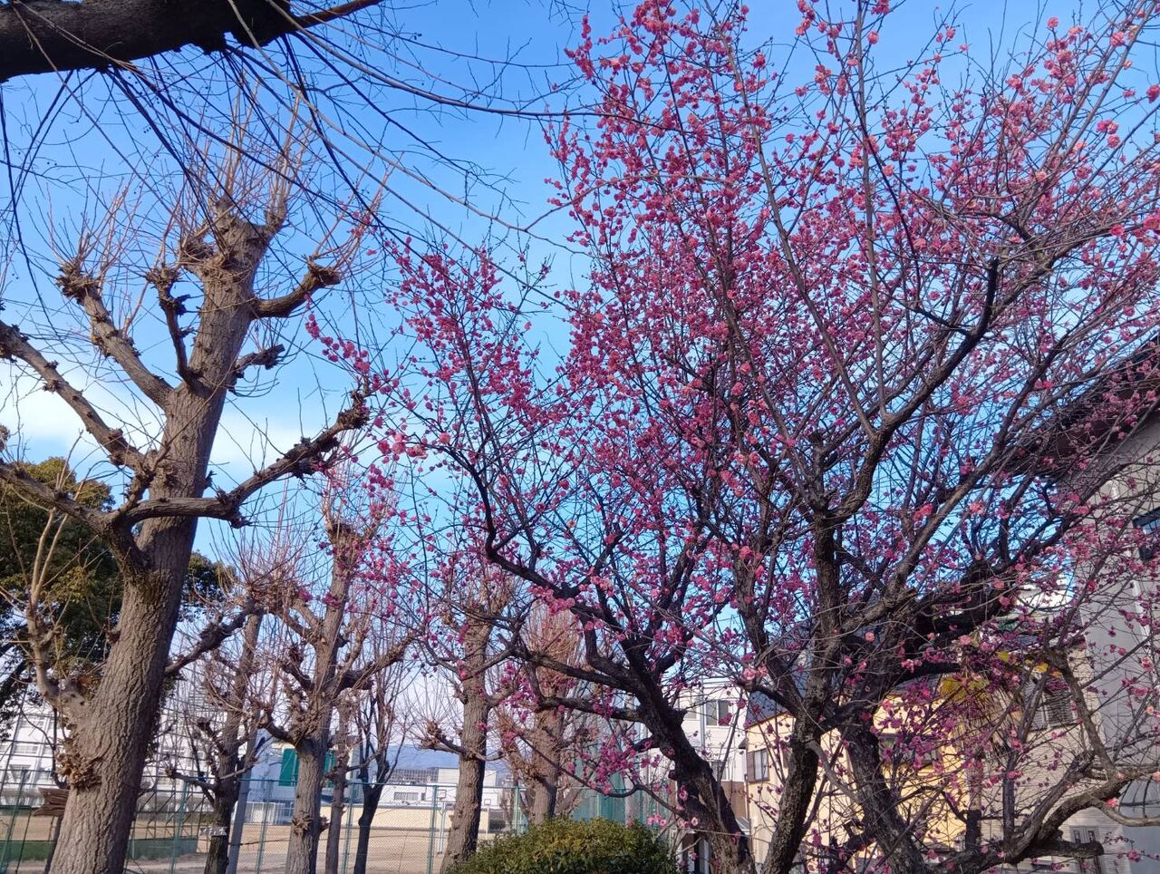 ◆高槻の梅としまして、早くも第一中学校で開花している梅を見かけたました。 2026年1月11日