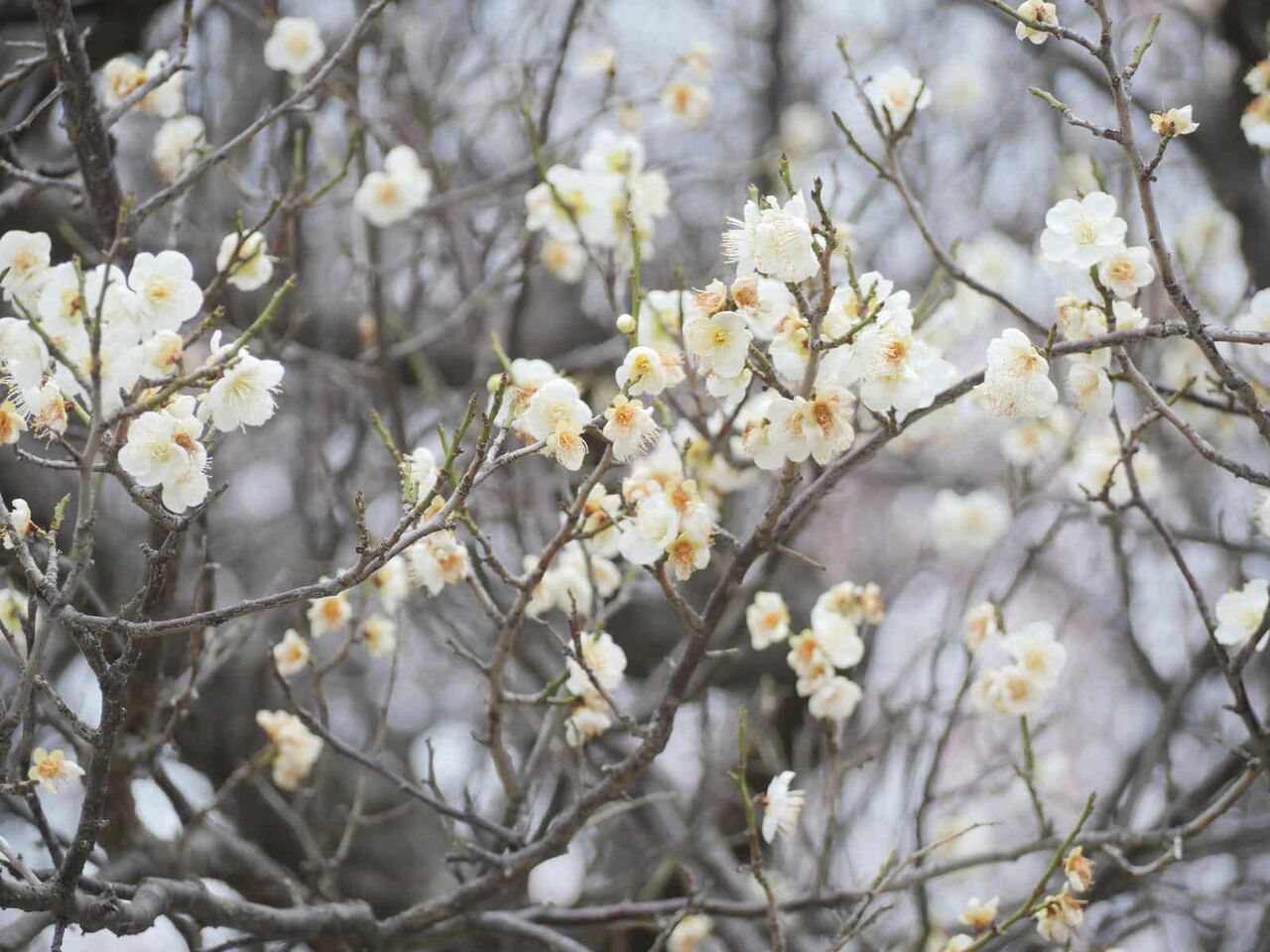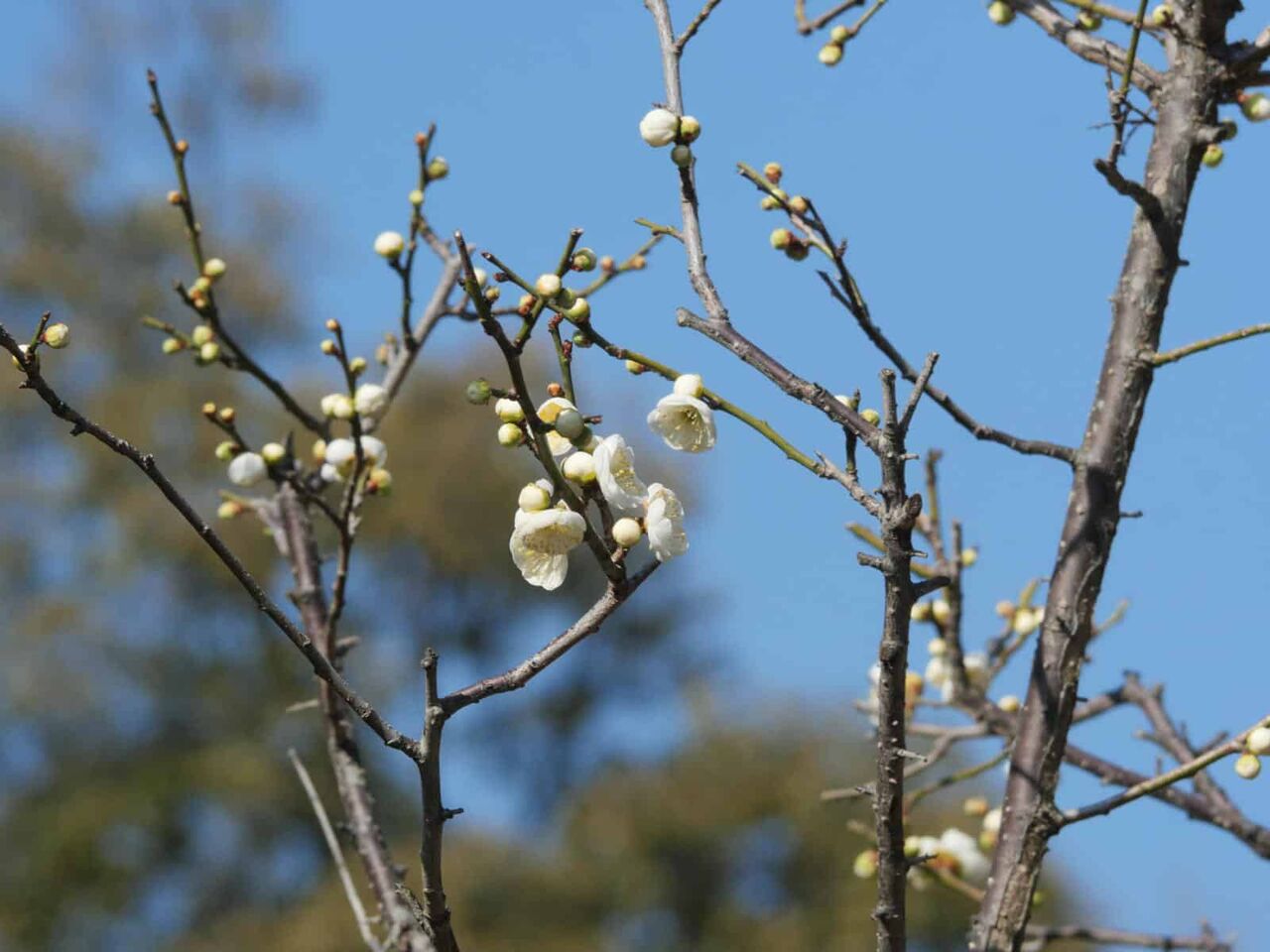 公園には小さな梅がいくつかあり、咲いていました。
