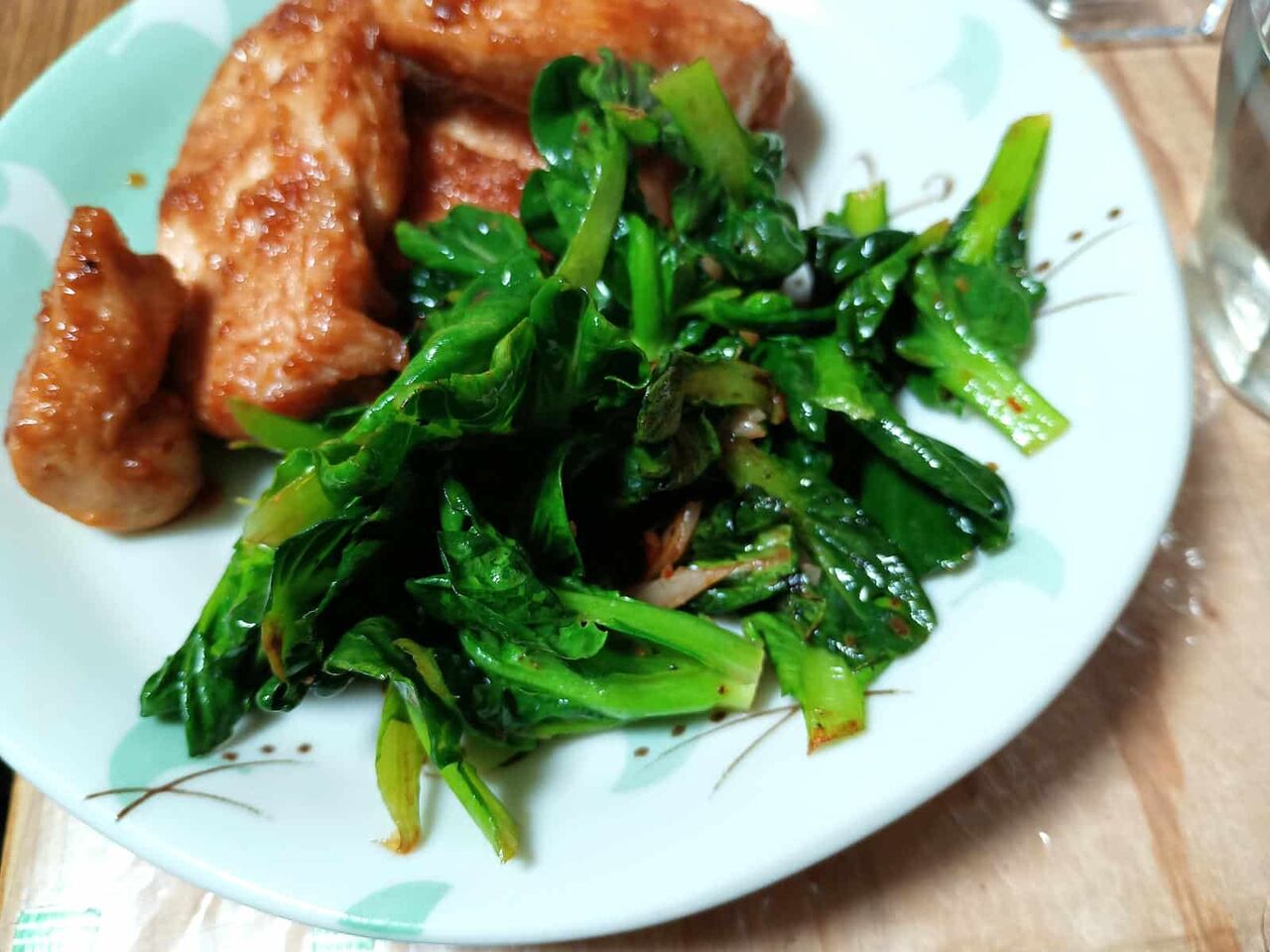 タアサイの炒め物ができました。鶏肉と合わせていただきました!