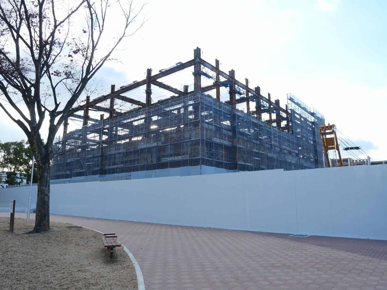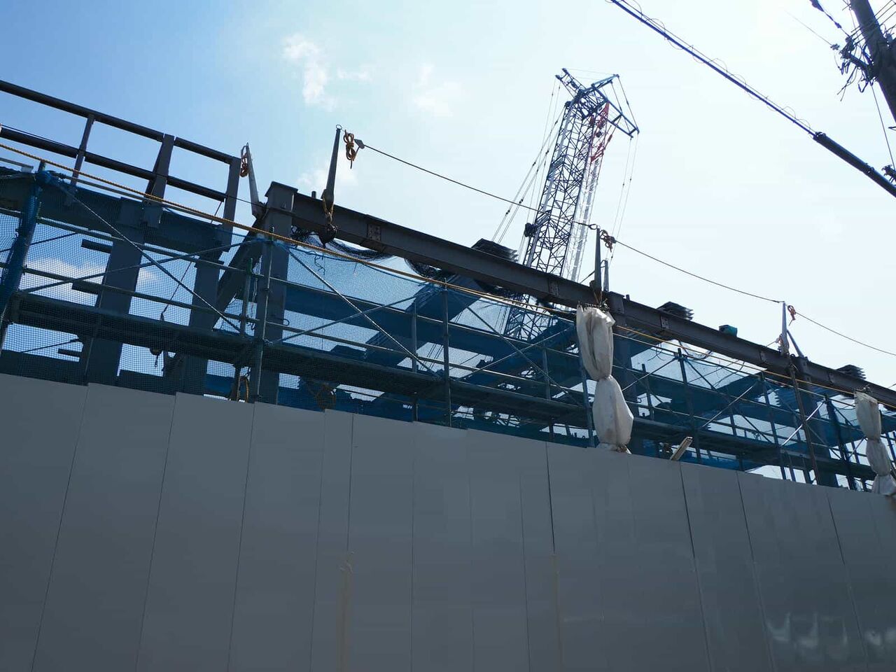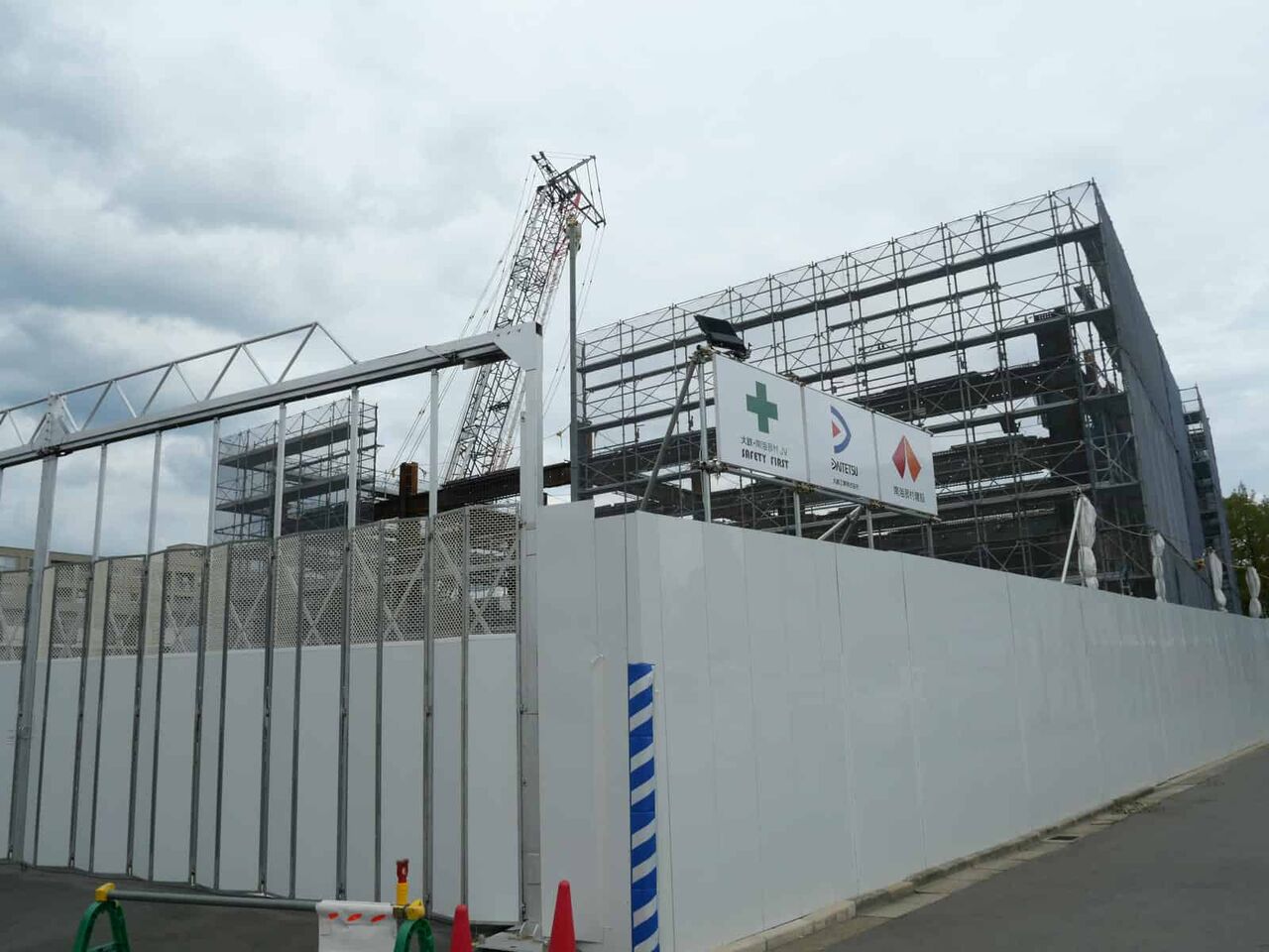 奥の方ではすでに一部の建物の鉄骨の組み立てが始まっているようで、