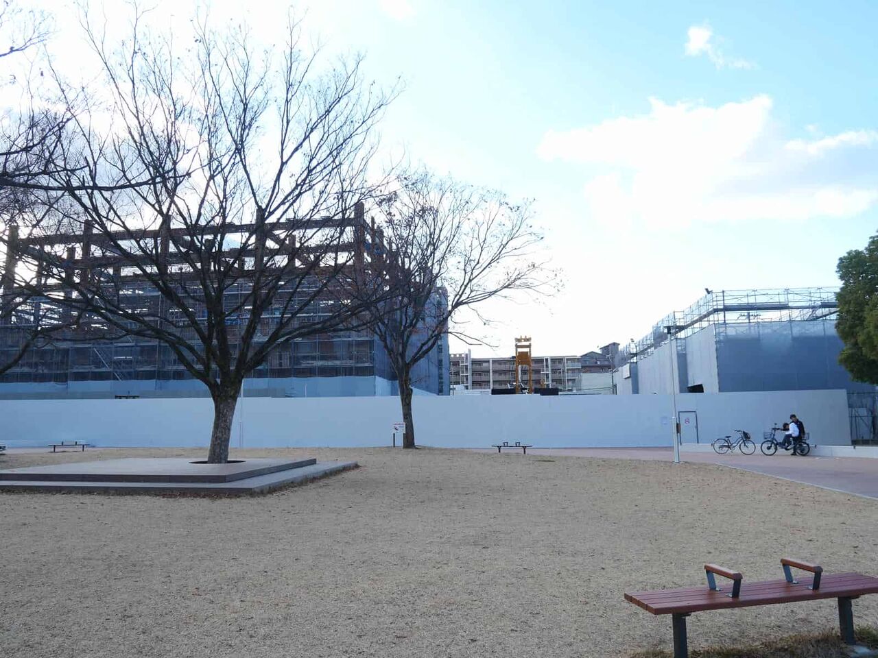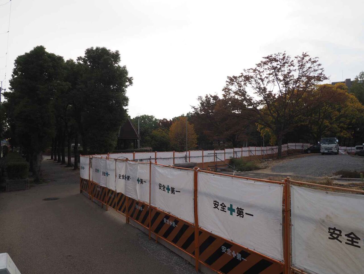 東側にある芥川公園も同時に工事をされていまして、その東側から工事の様子が少し見られます