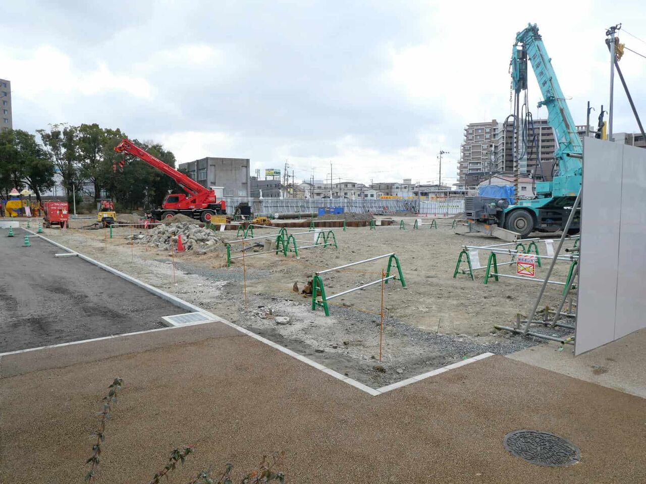 別の日ですが、中央付近では基礎工事が終わっているようです。