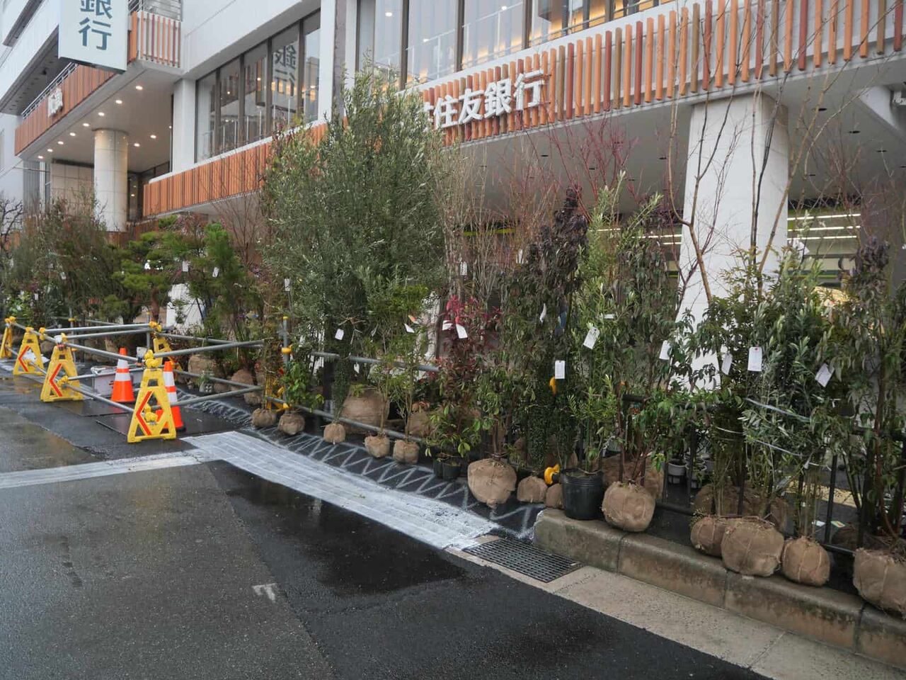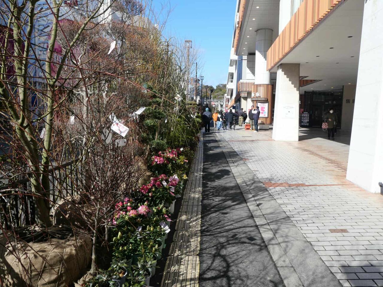 ◆高槻阪急の歩道沿い、例年天神祭りに合わせて開催されている植木市です。