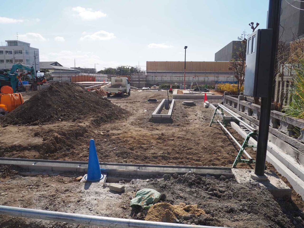 まだこのように敷地のとくに北側周辺の工事がまだ終わっていないようです。