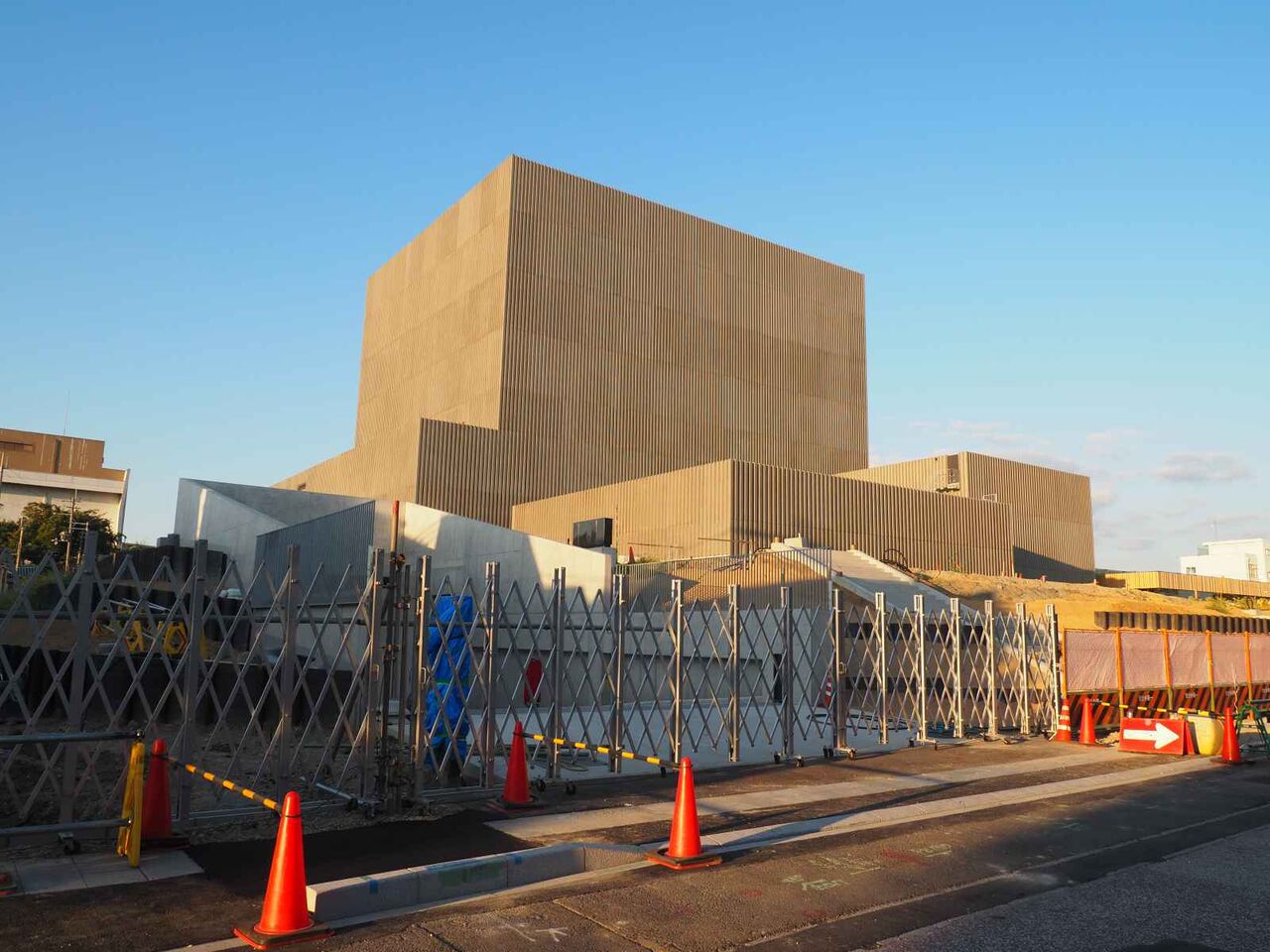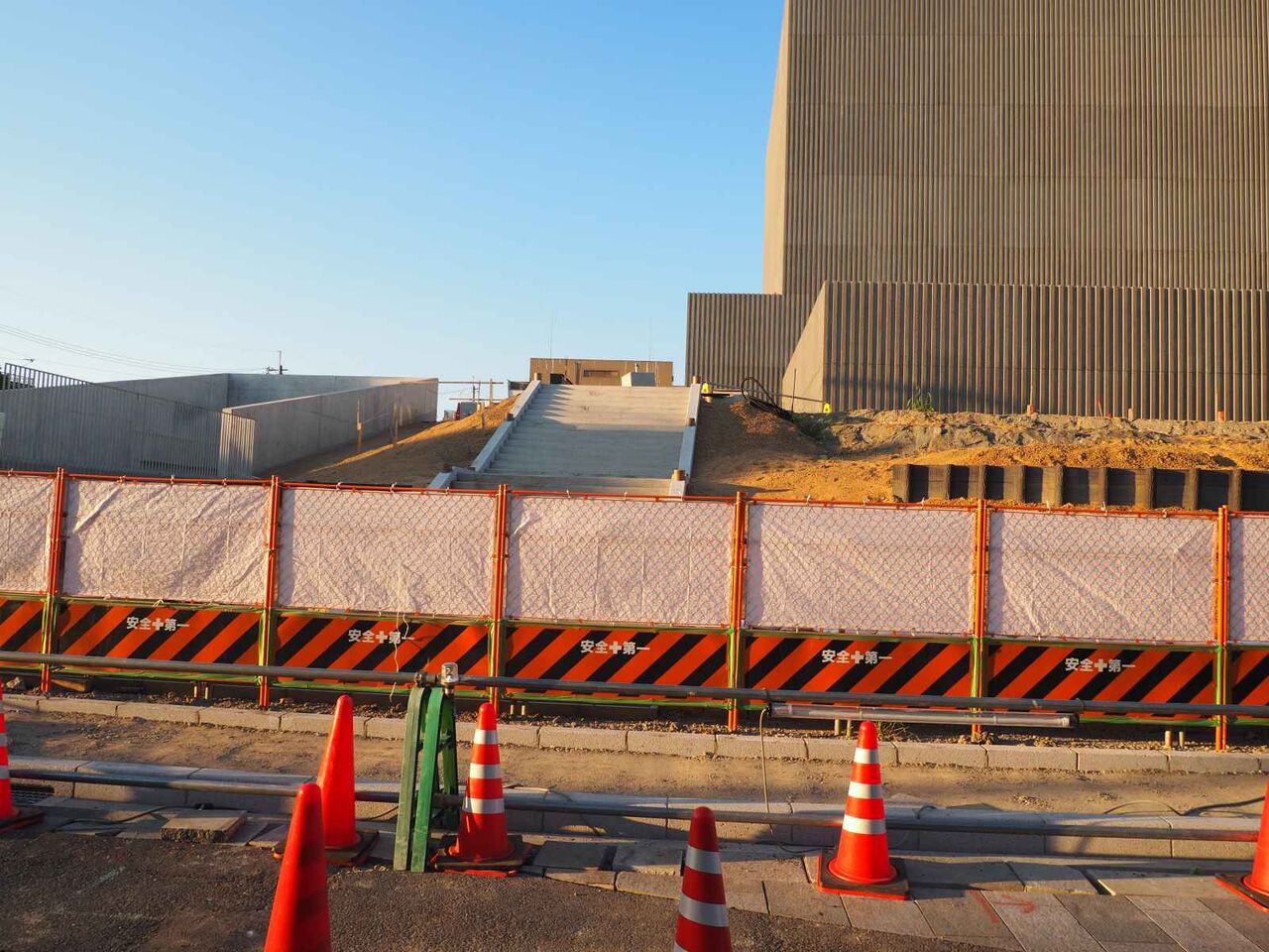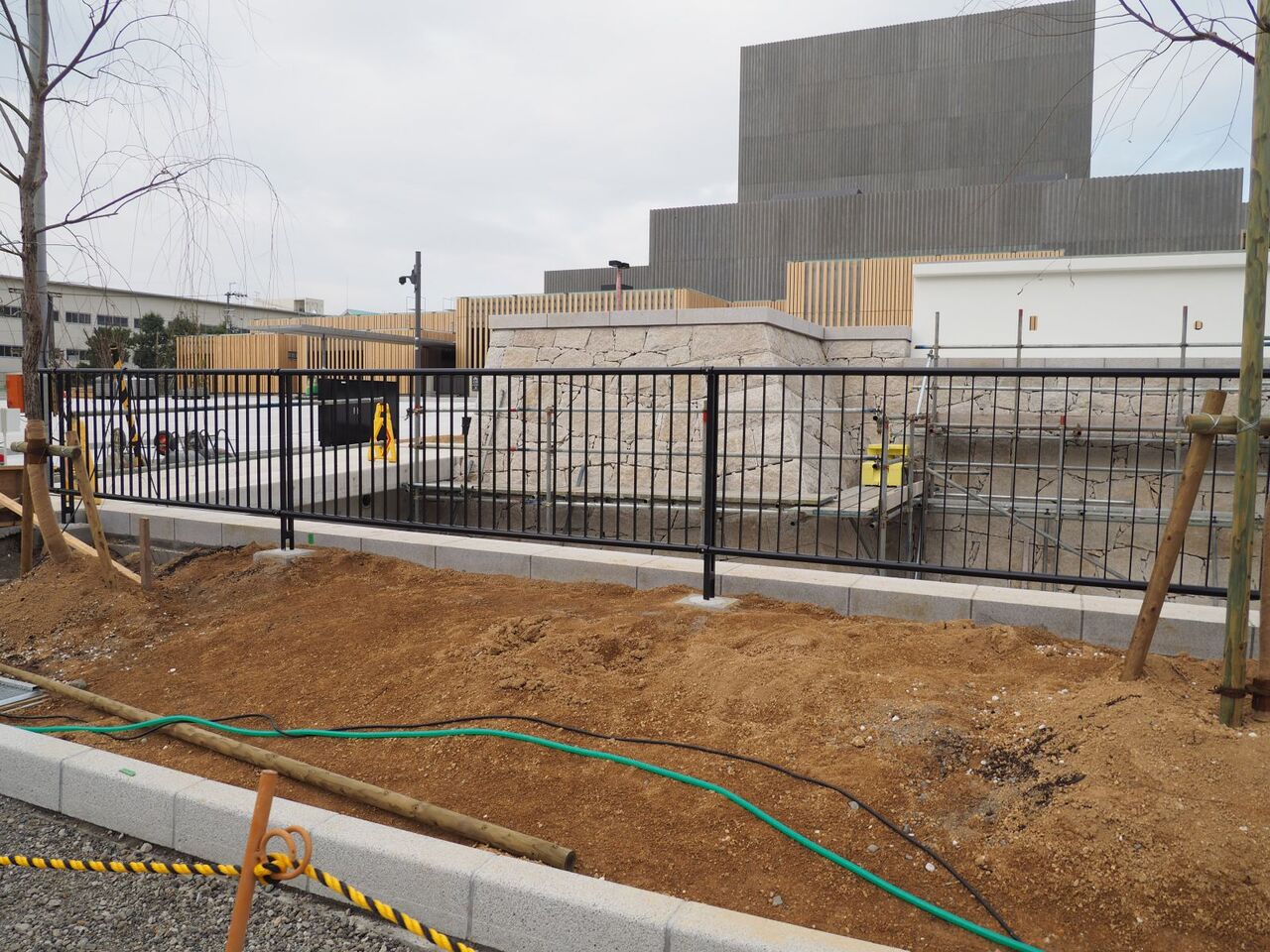 なお、南西の角はこのようなようすです。西側の道路沿いですが、こちらも囲いがなくなったようですね。ということでいよいよ開館まで3か月を切ってきましたが、開館まで変化ありましたら追記したいと思います。