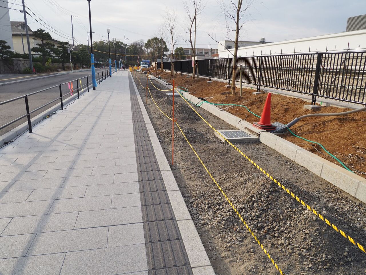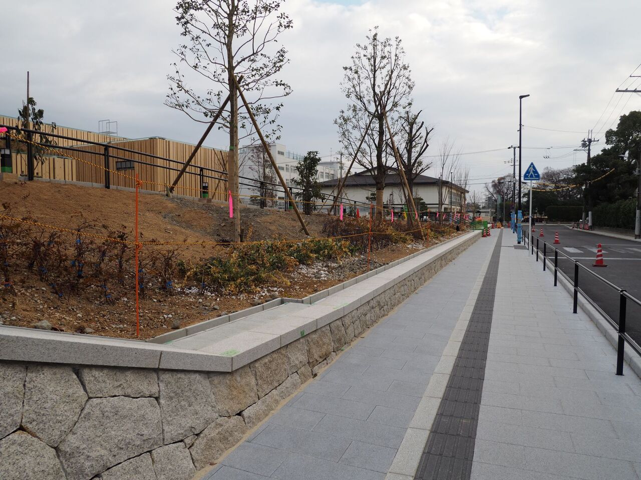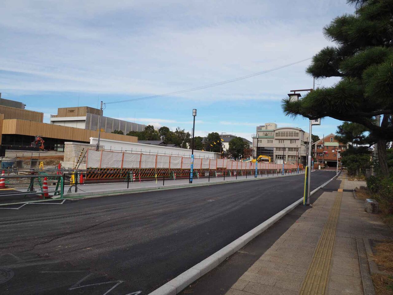 なお、南西の角はこのようなようすです。西側の道路沿いですが、こちらも囲いがなくなったようですね。ということでいよいよ開館まで3か月を切ってきましたが、開館まで変化ありましたら追記したいと思います。