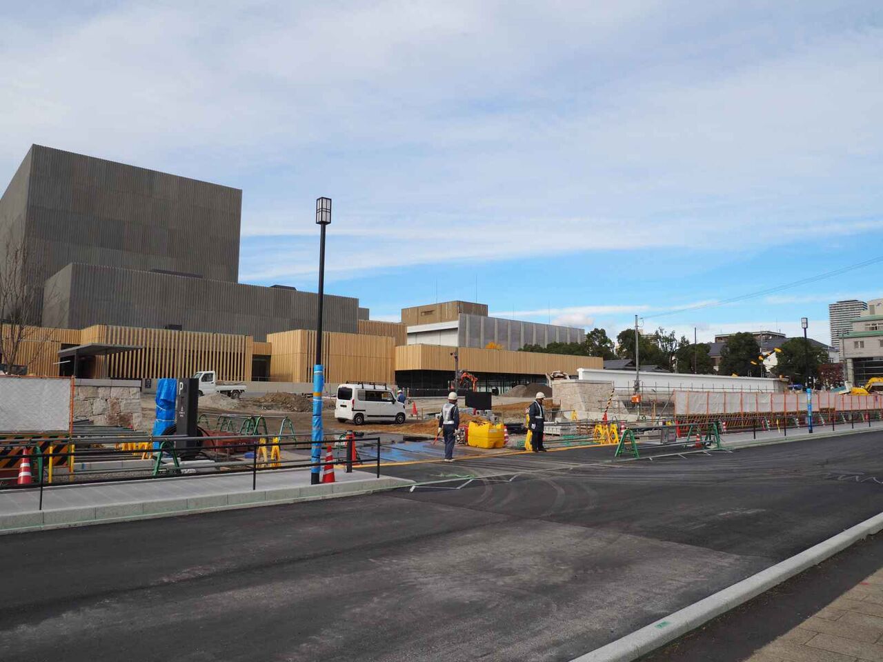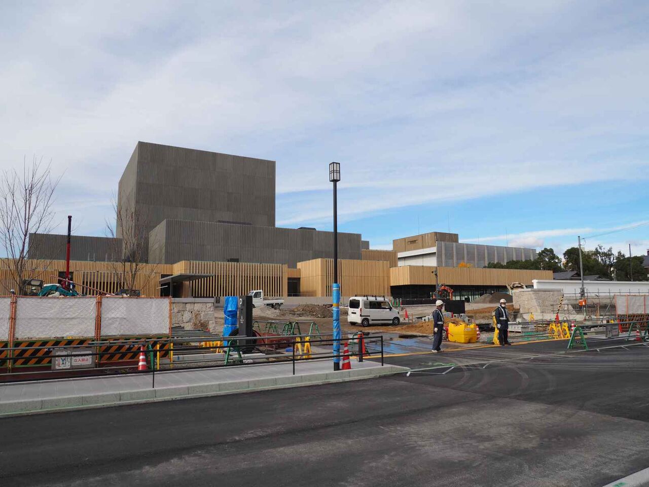 芸術文化劇場の工事のようすですが、東側の工事の囲いがなくなりました(2023年1月2日時点)