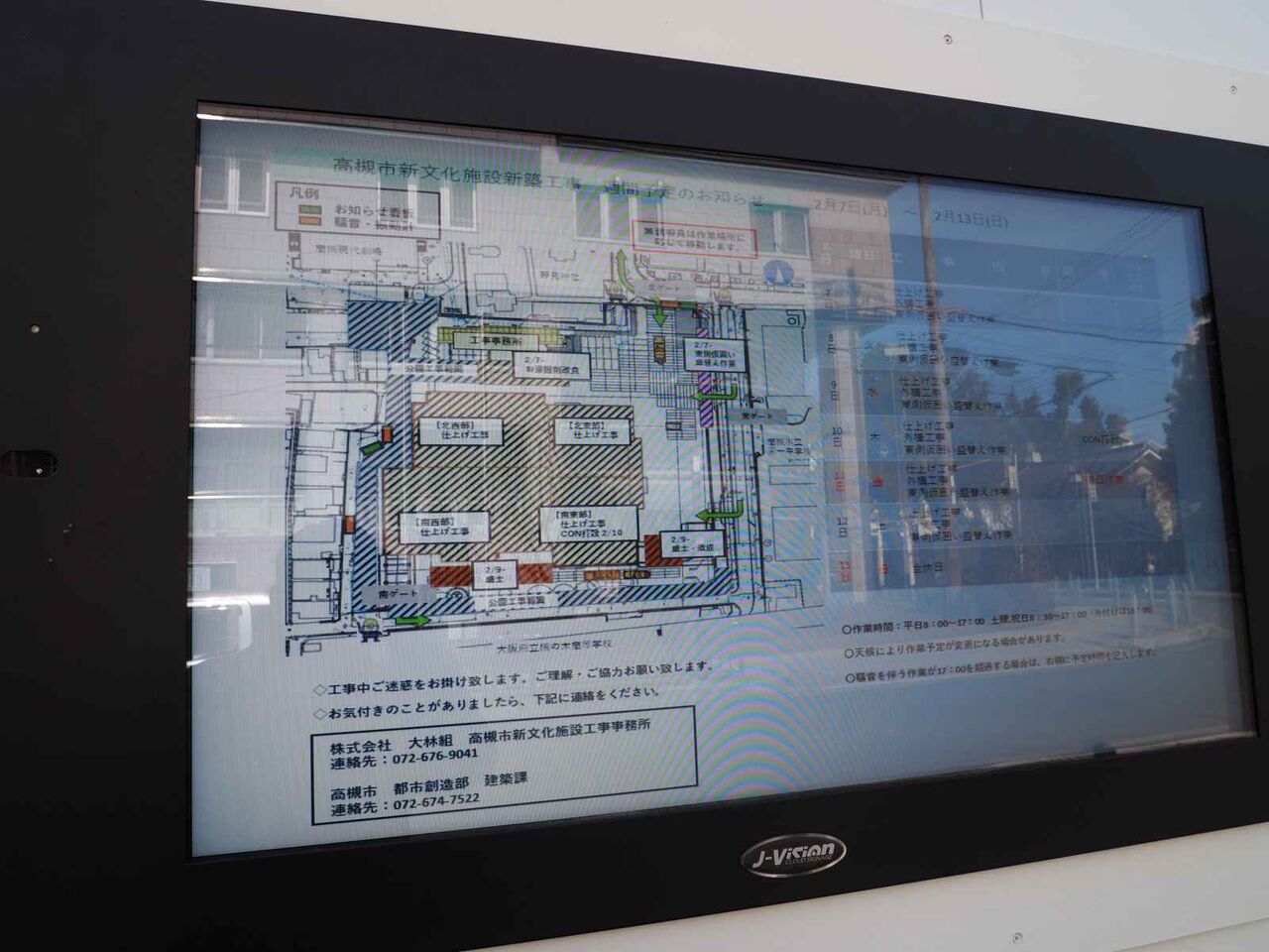 ▶高槻芸術文化劇場の工事のようす 骨格が組み立てられ始めてる 地域には週ごとの工事予定の表示もあるみたい 2021年1月