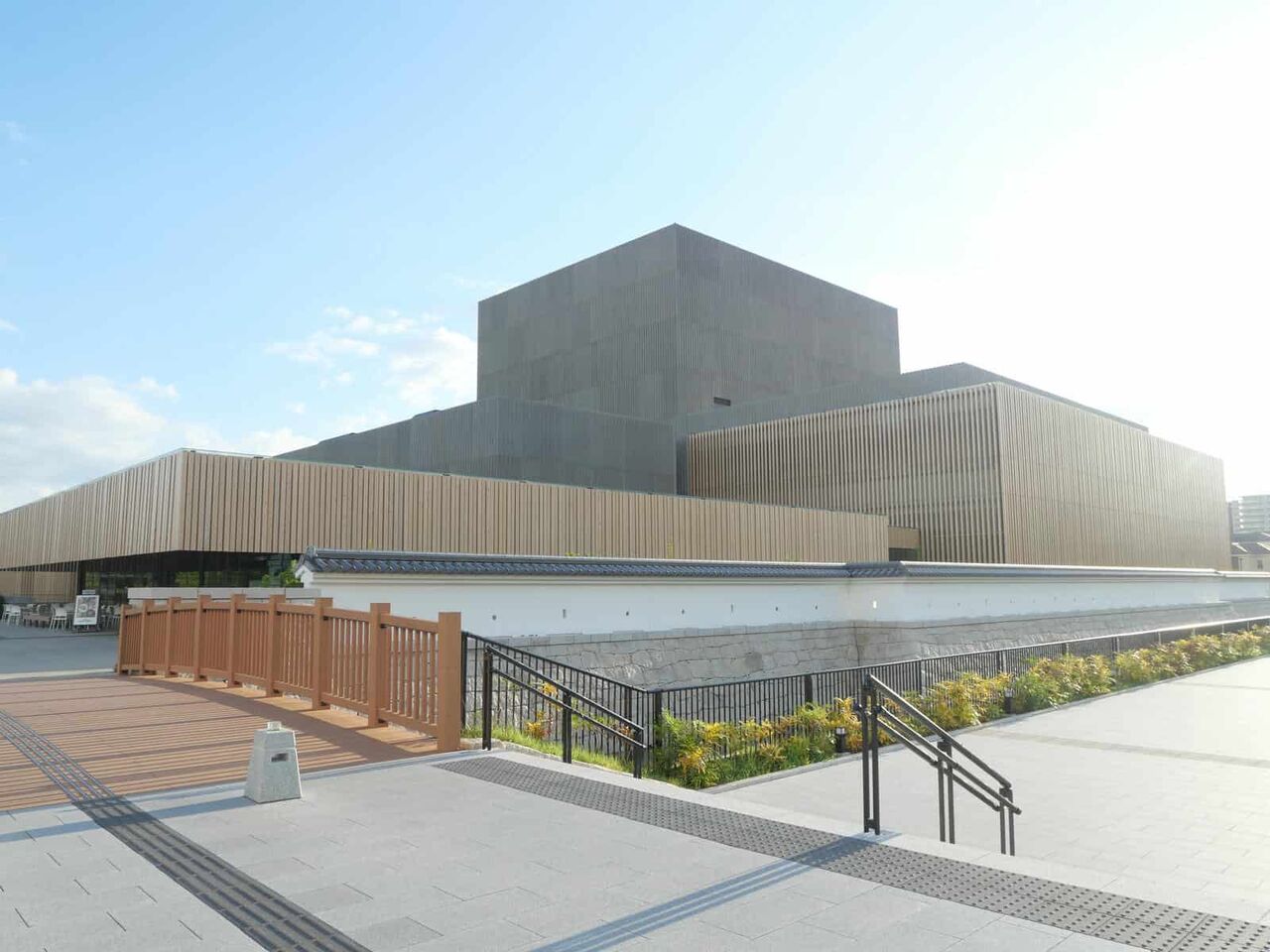 旧二の丸御殿だった敷地の大きさに建てられている高槻芸術文化劇場。この茶色の橋は、発掘された不明門のイメージのようです。