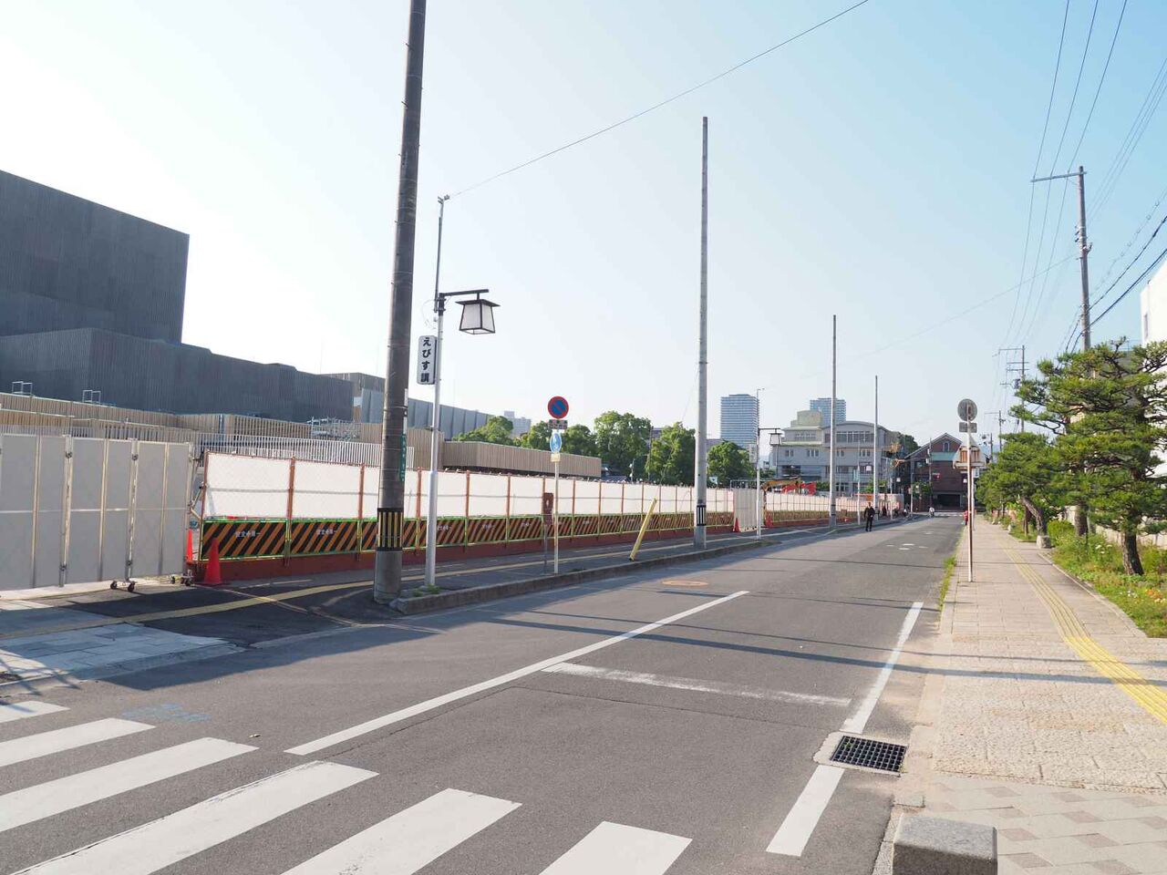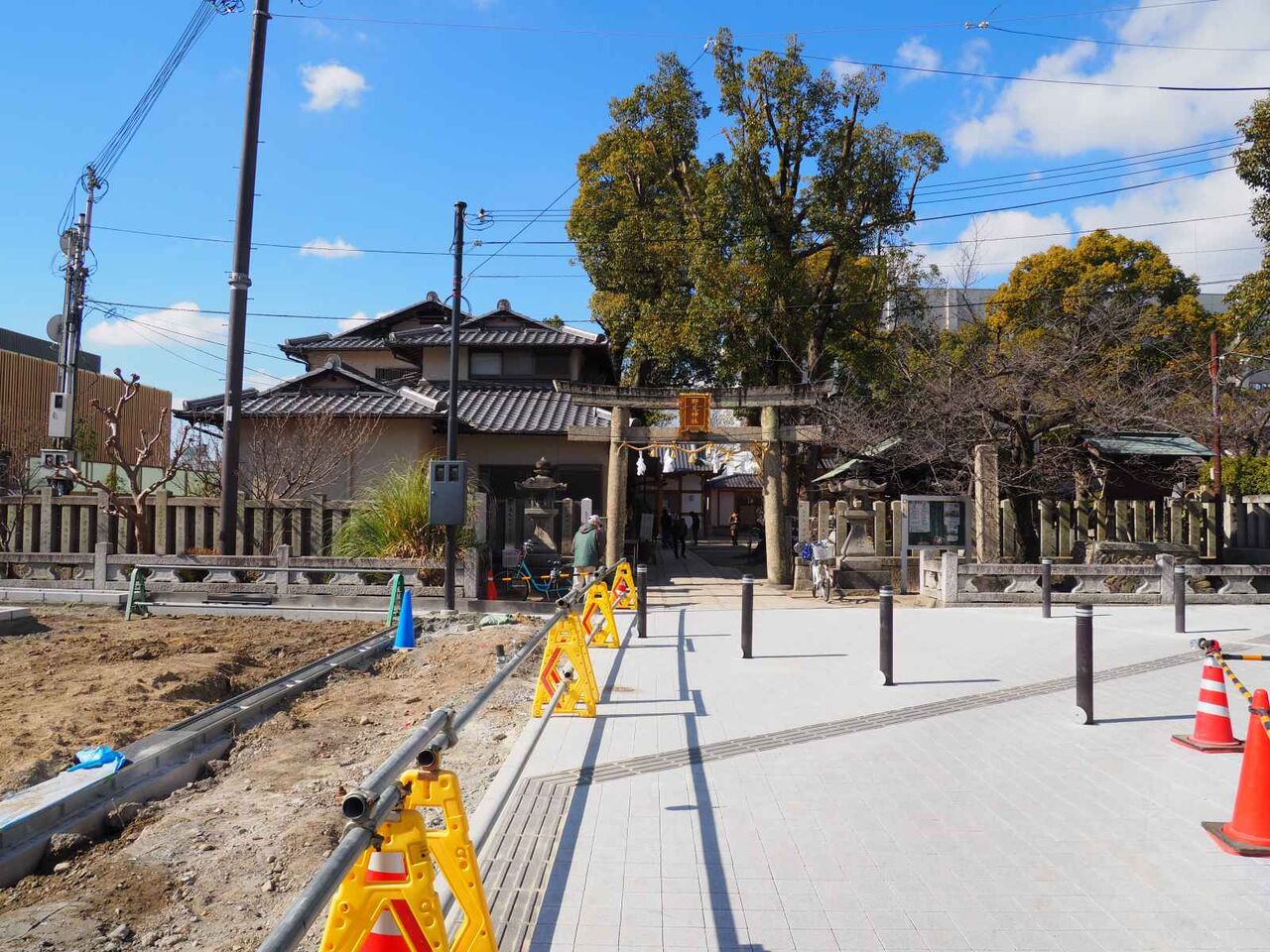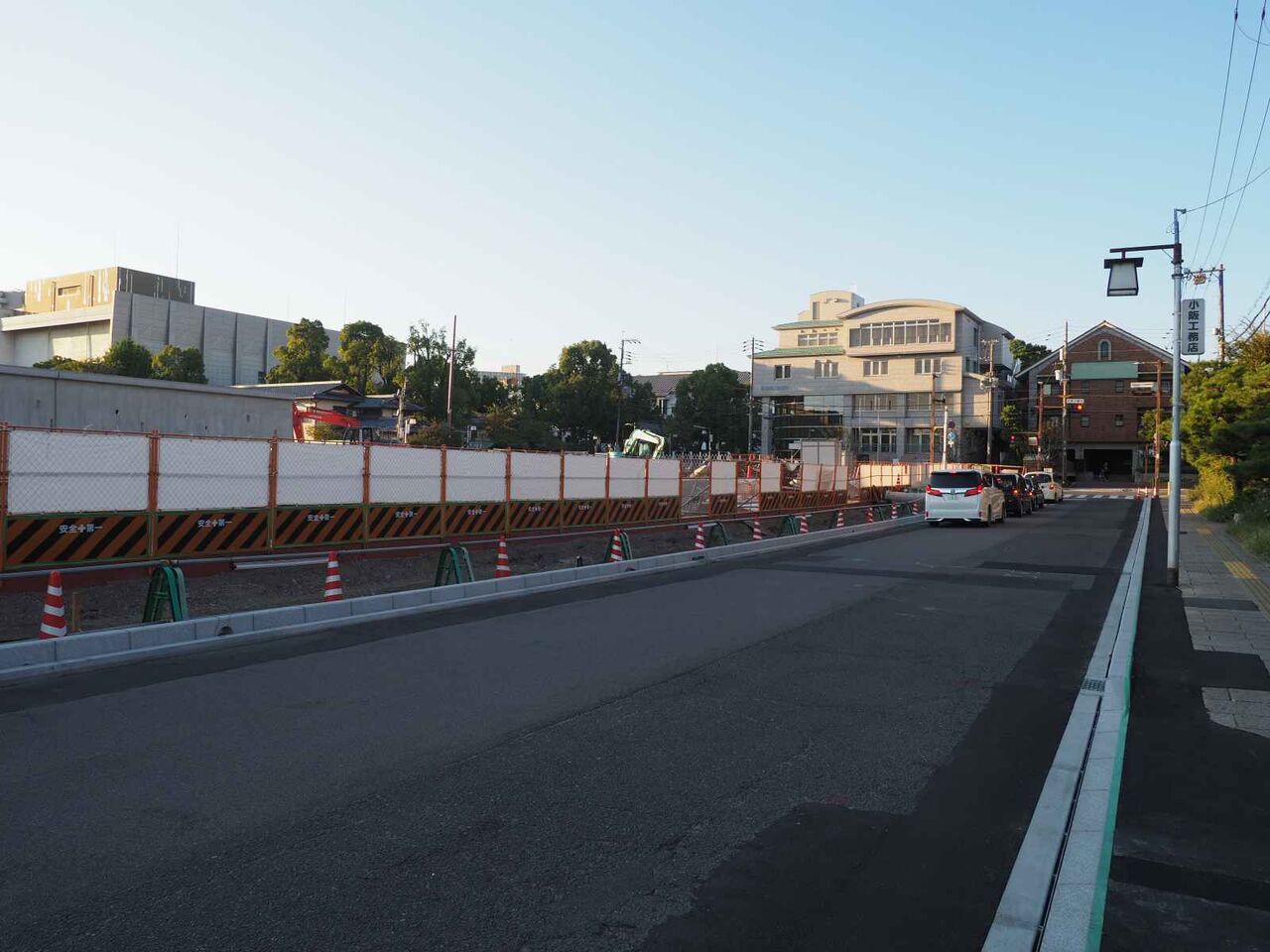 野見神社からでたところ、工事車両の出入りする場所の囲いがなくなりました。とてもすっきりしています。