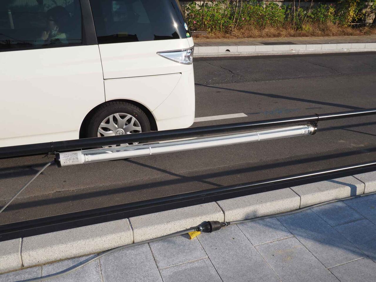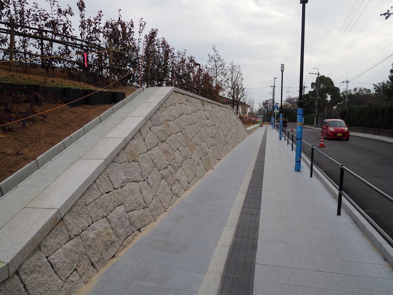 きれいに貼りなおされているようです。さらに車が乗りあげないよう、斜めにポールもいくつか取り付けられているようです。