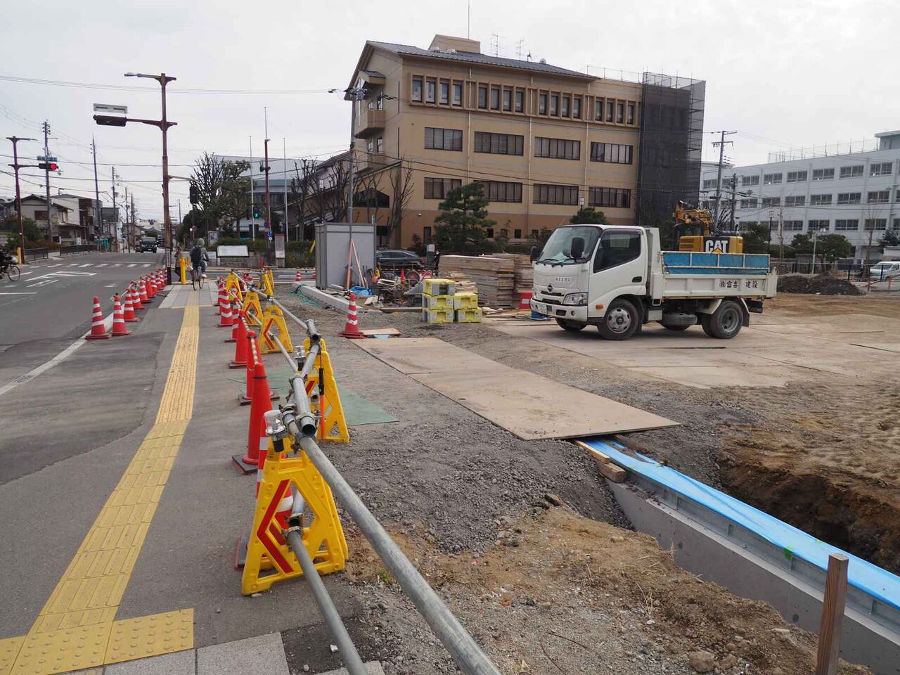 北側の工事が終わるまでもう少し観察したいと思います。歩道の工事が次始まりました。