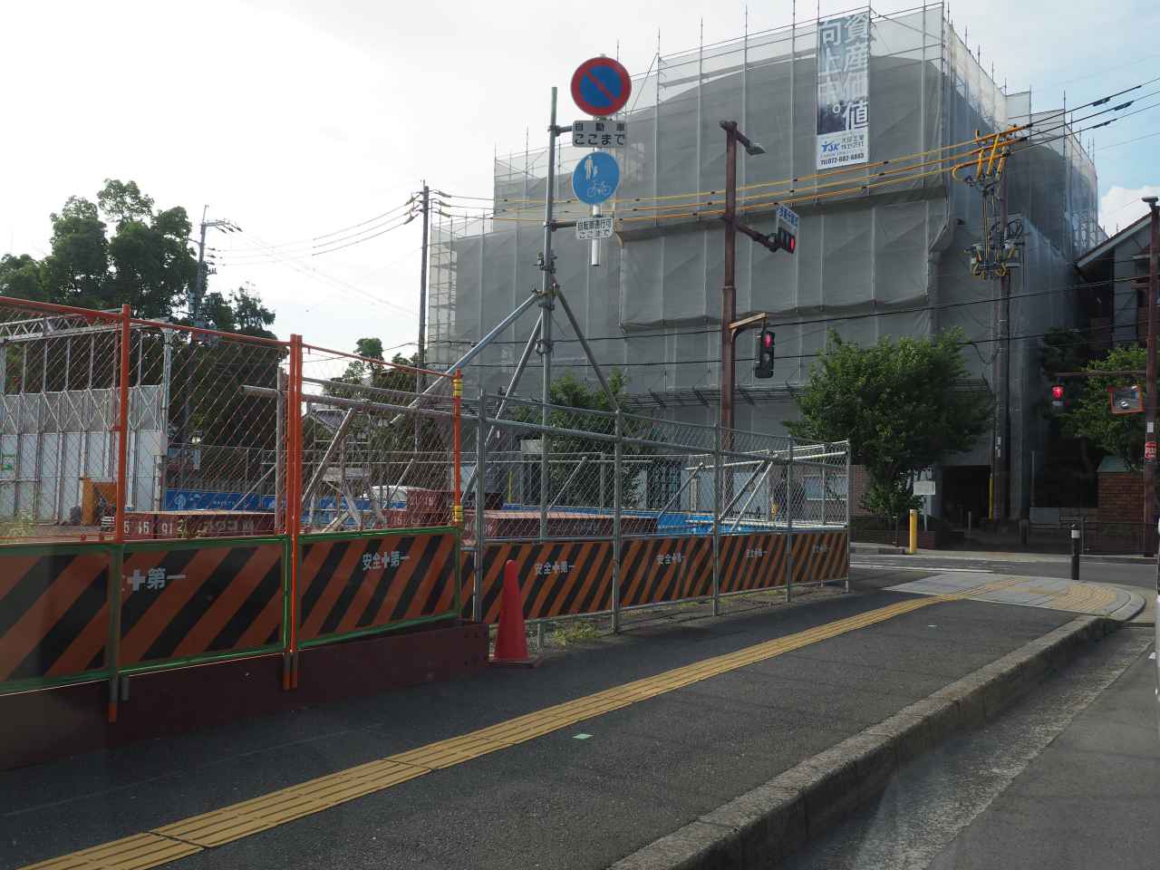 高槻芸術文化劇場の工事のようすです。一中前の芸術文化劇場の東側の歩道が工事で通れなくなってるようです(2022年7月)