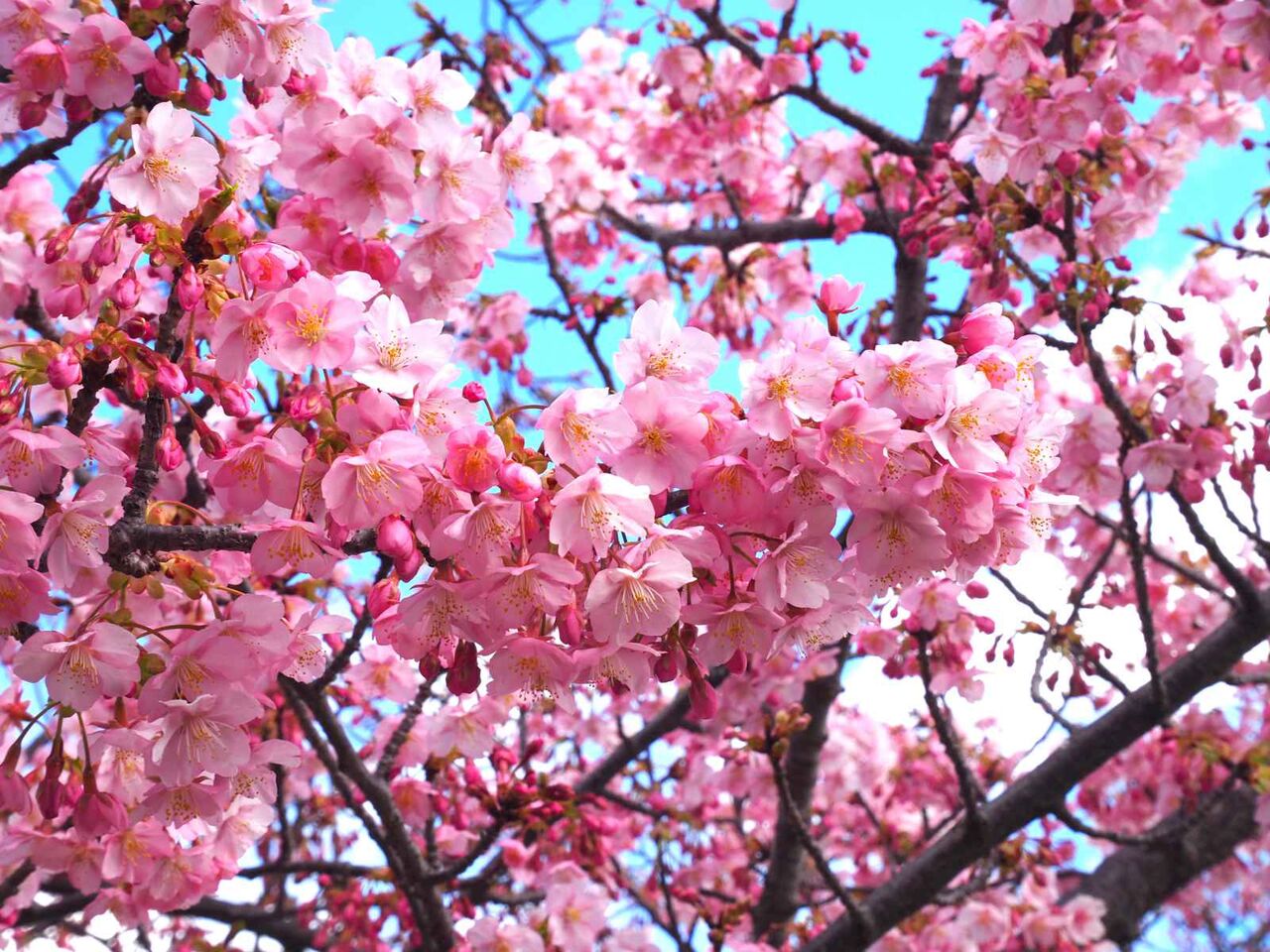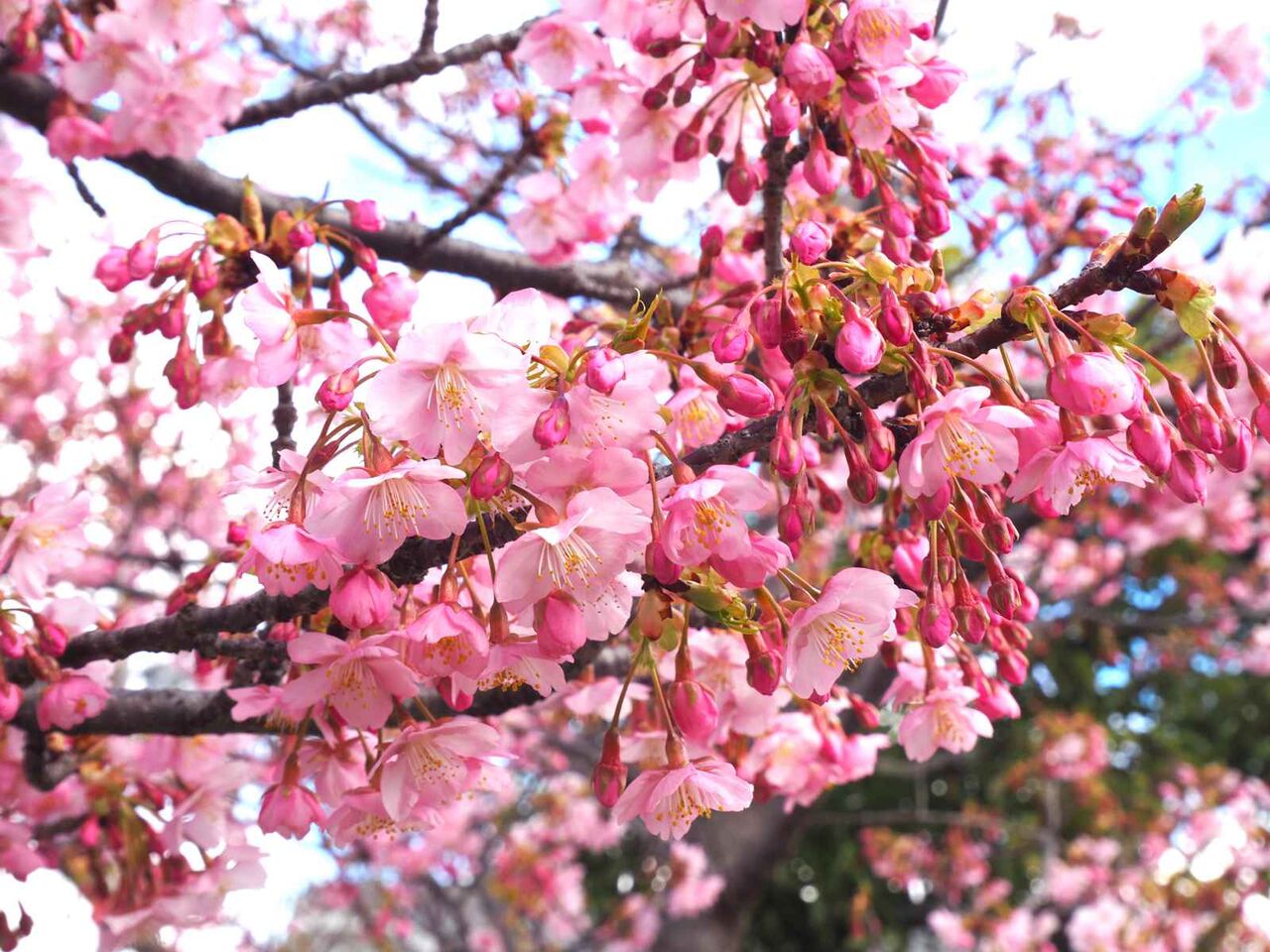 ▶高槻の河津桜 筒井池公園の河津桜が満開になってる 2021年3月