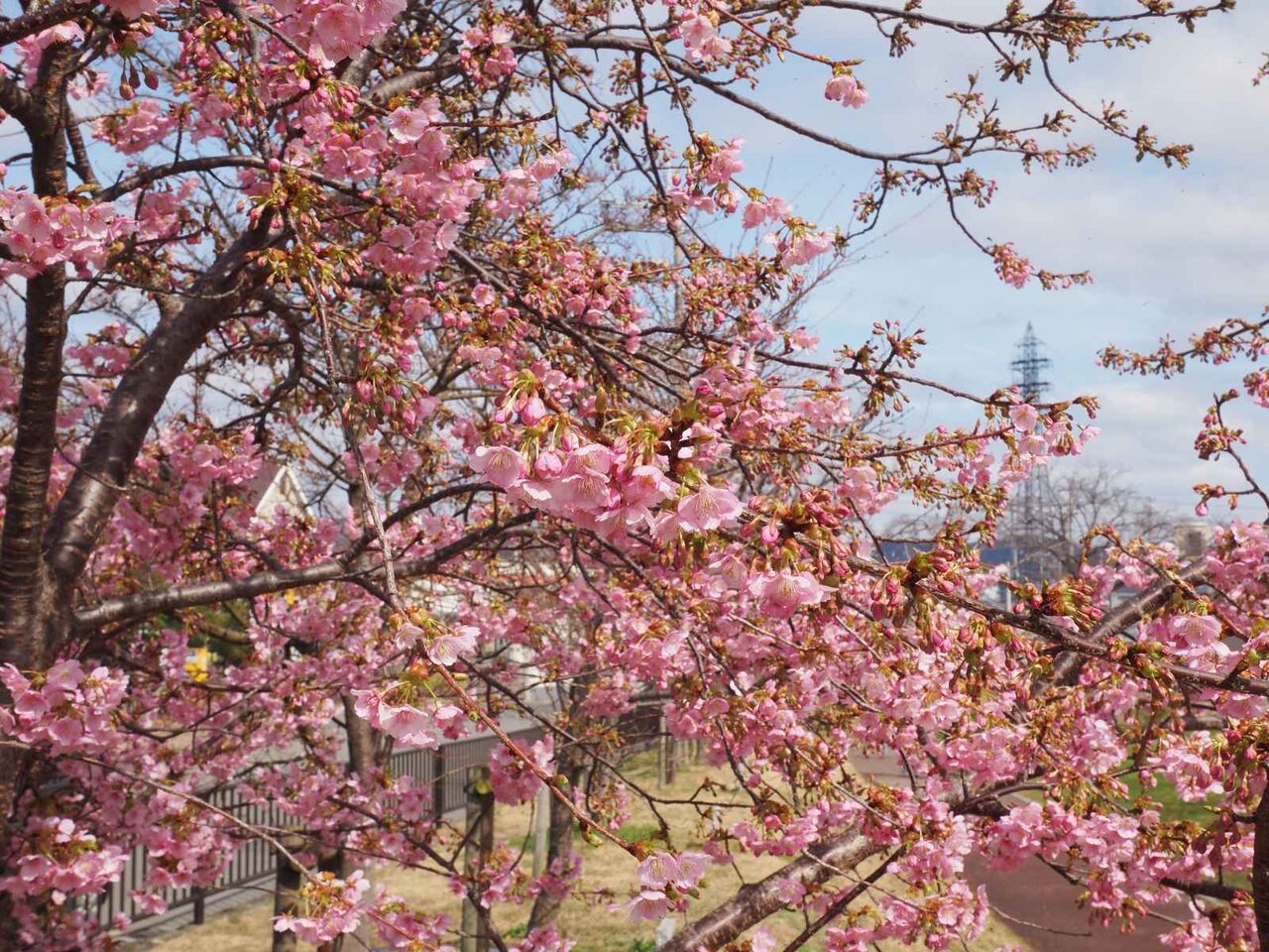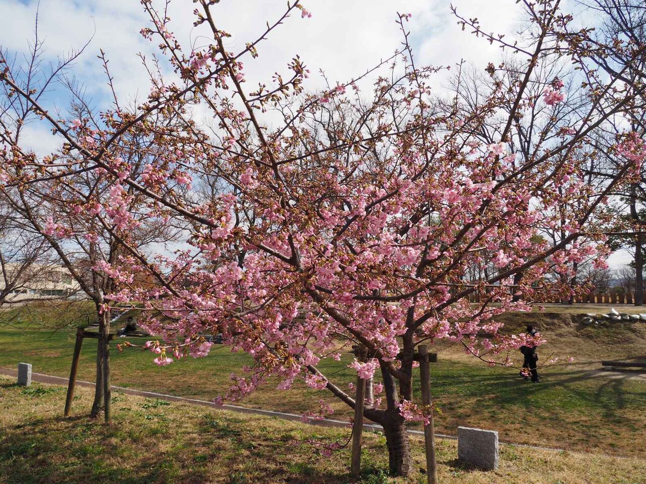 今城塚古墳公園にある河津桜ですが、かなり咲いてきているようです。