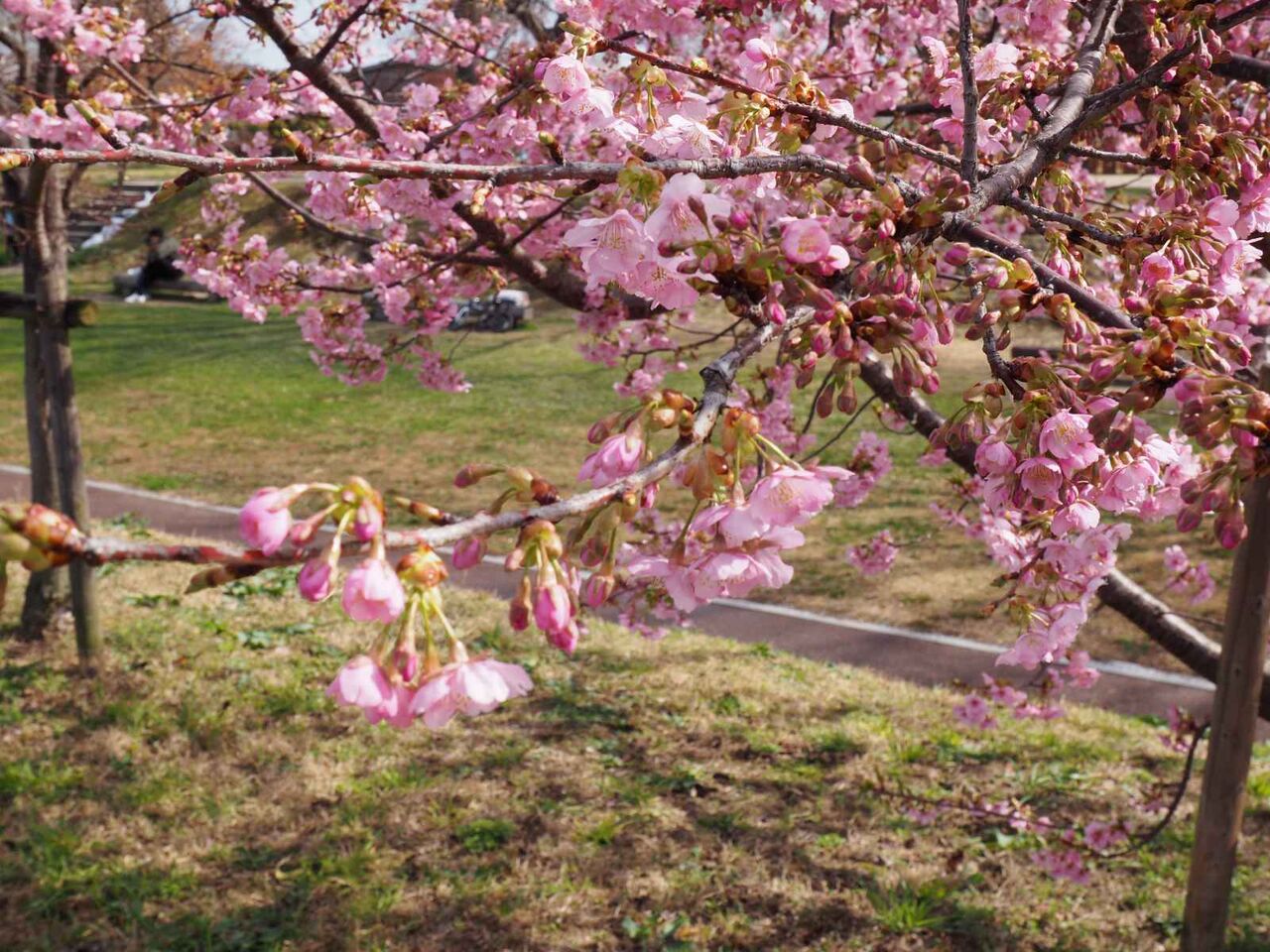 ◆高槻の河津桜としまして、今城塚古墳公園の河津桜が満開近くになってきているようです(2024年2月24日)