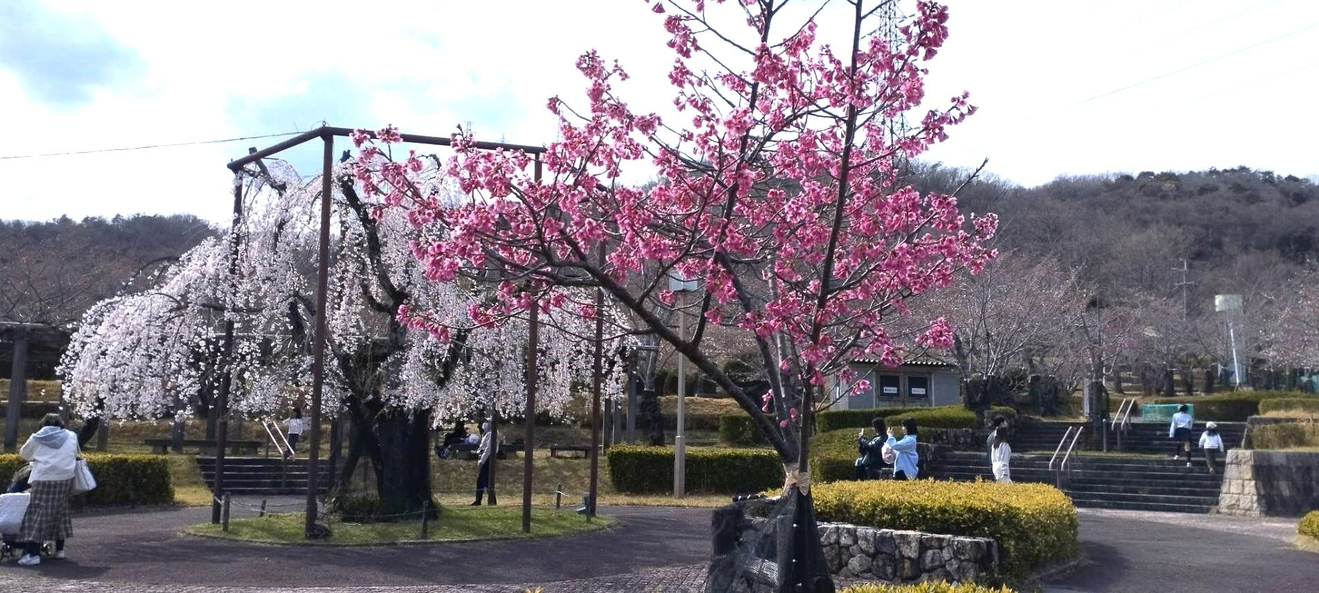 高槻の桜としまして、摂津峡公園のしだれ桜が咲いてきたようです!! 2025年3月18日