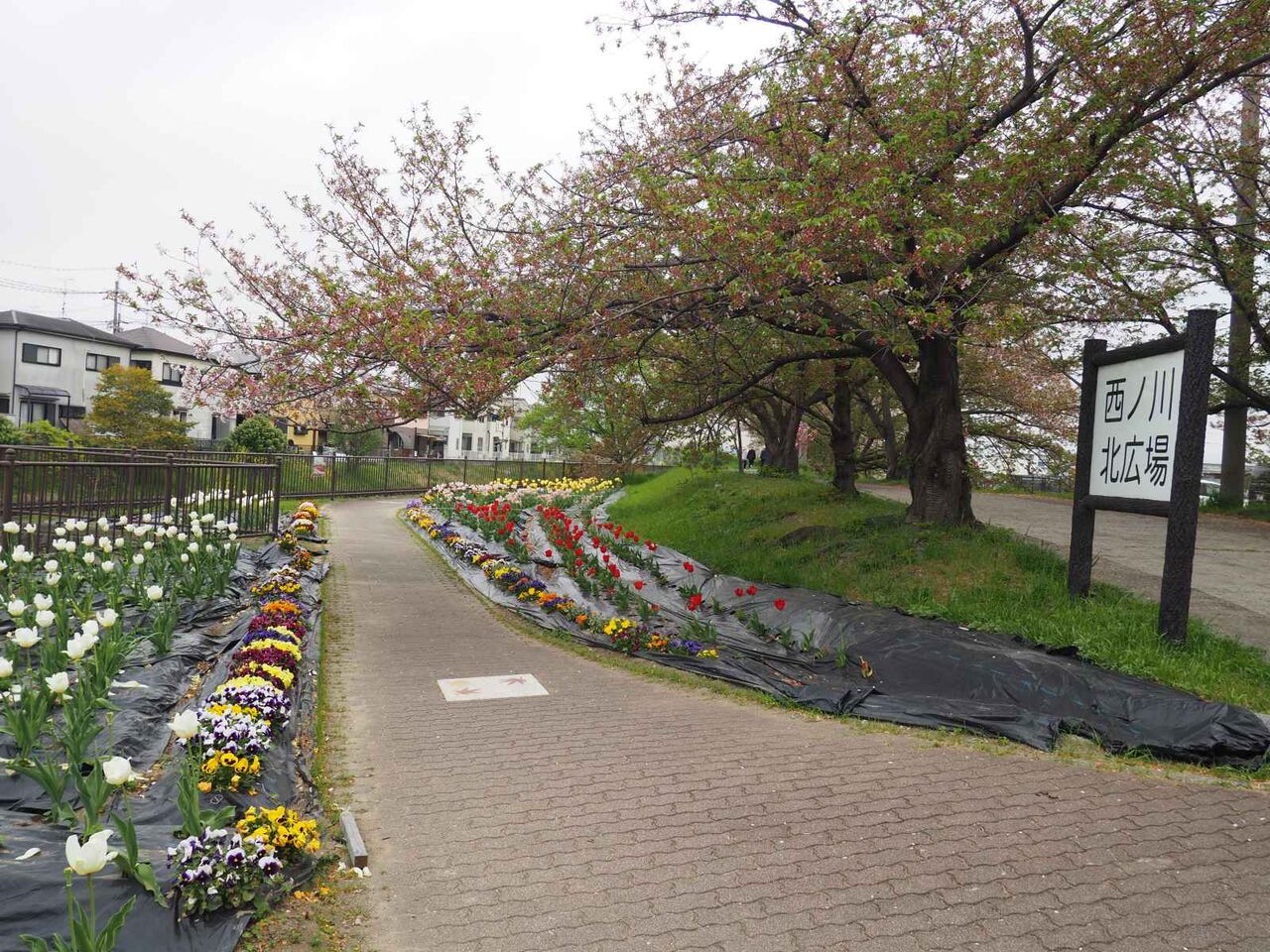西ノ川公園には多くのチューリップが植えられていて、